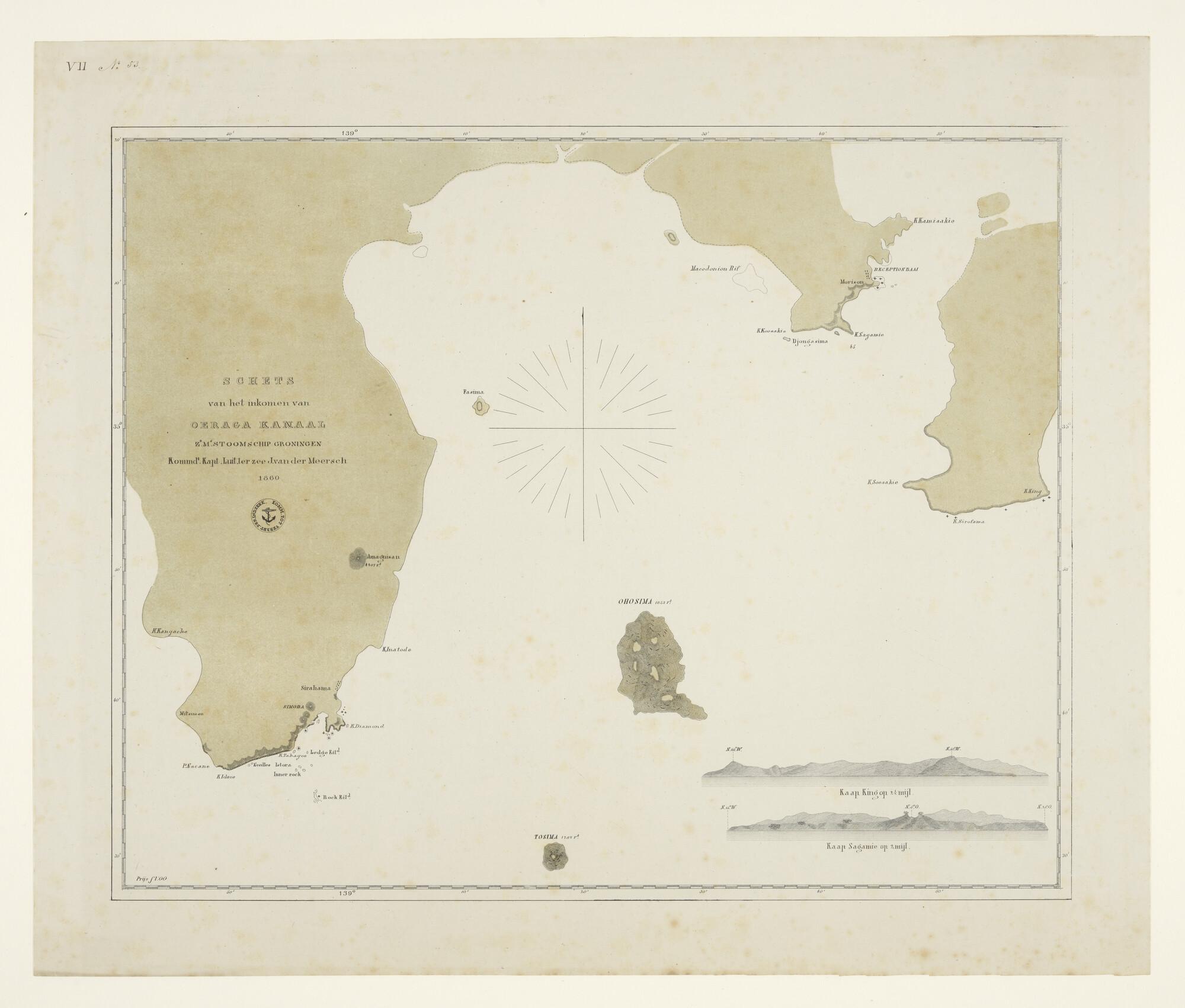 Kaart van de monding van het Oeraga Kanaal, opgenomen door J. van der Meersch op de Groningen