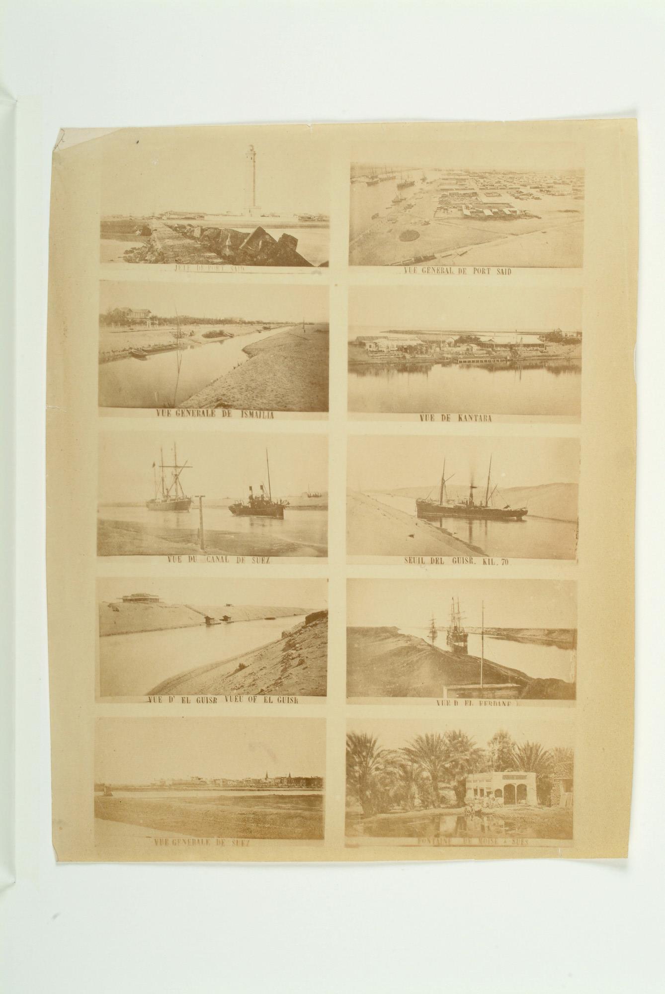 Fotocollage van het traject van het Suezkanaal en omgeving tussen Port Said en Suez, rond 1875.