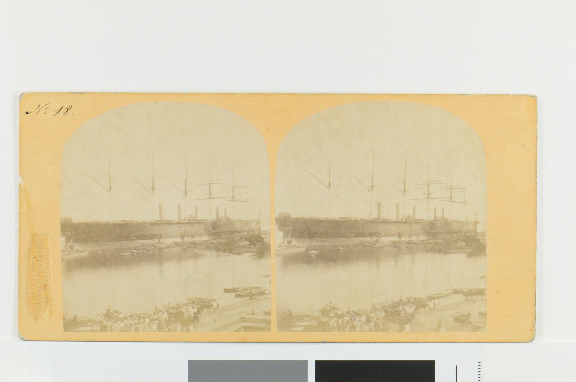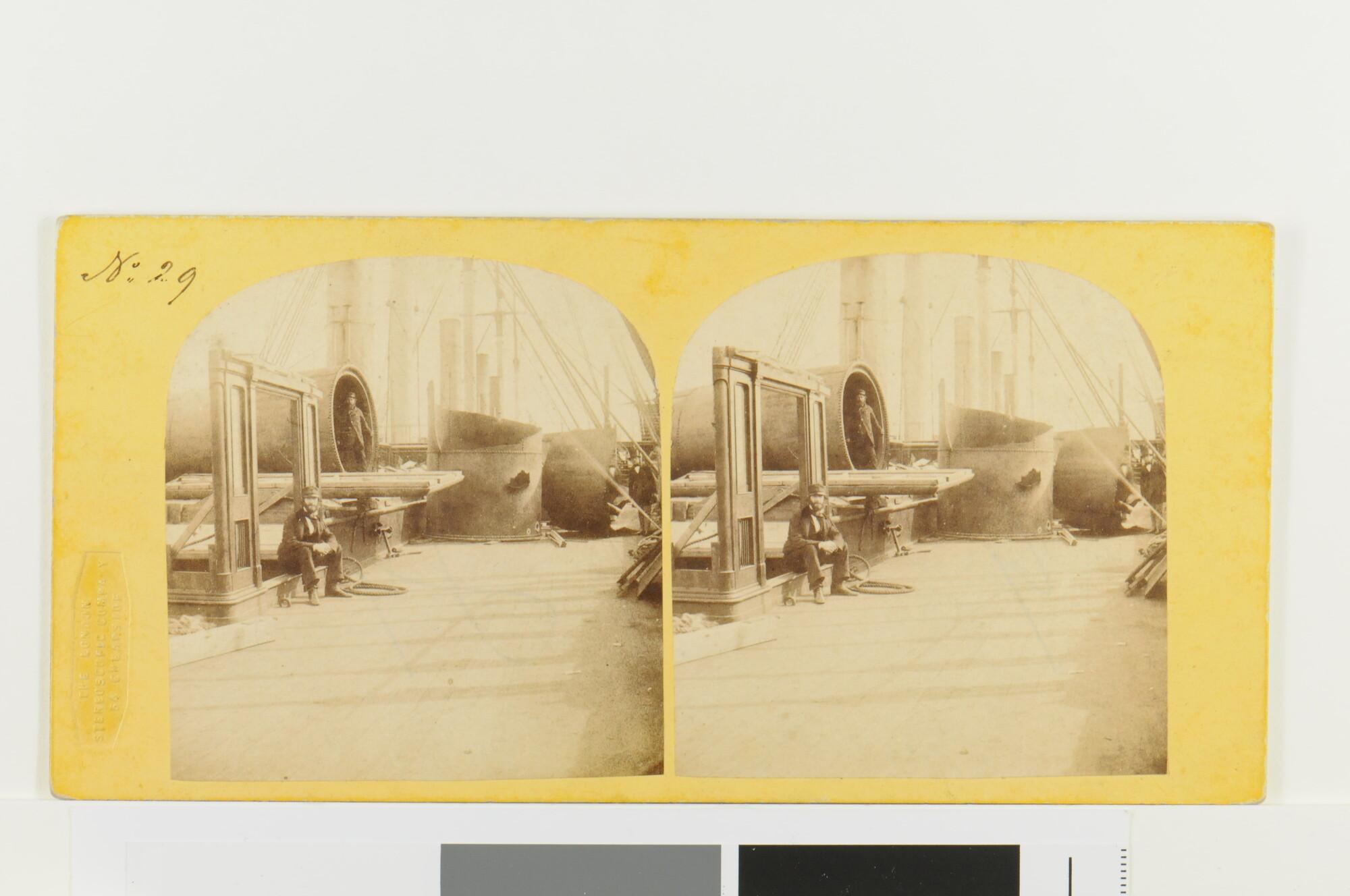 Twaalf stereofoto's betrekking hebbend op het schroefraderstoomschip The Great Eastern, gebouwd bij de werf Scott Russel & Co Millwall London, 1852-1857.