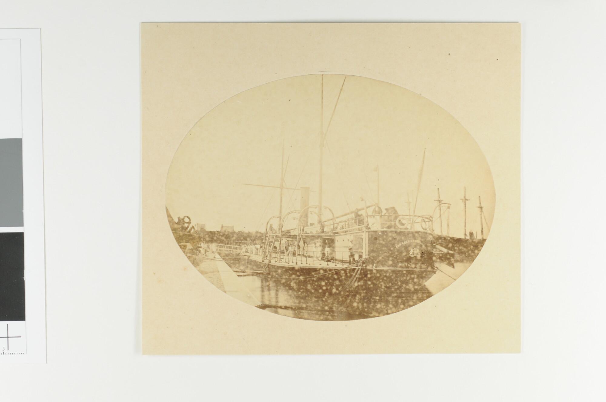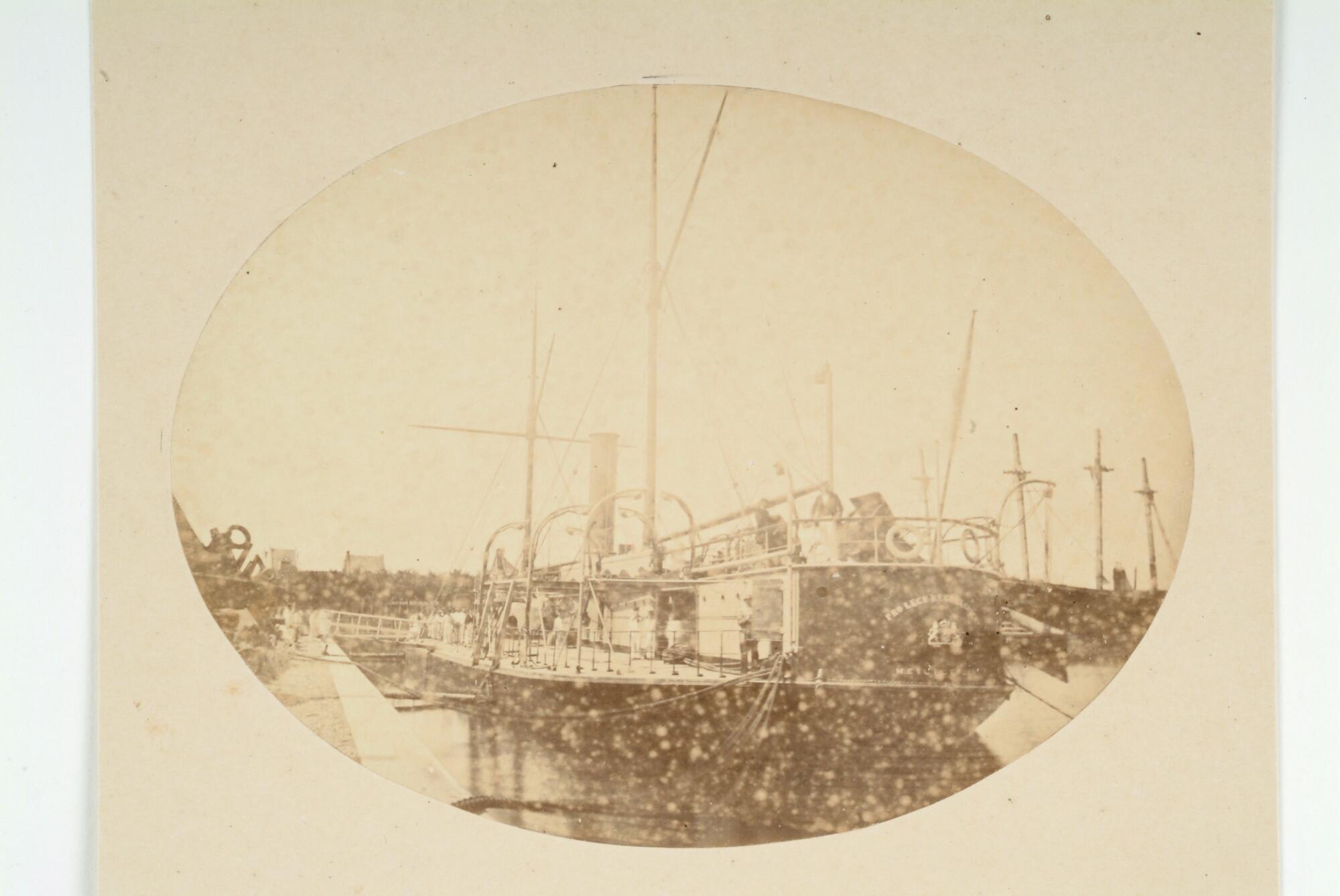 De monitor 2e klasse Zr.Ms. "Heiligerlee" gedokt in het stenen droogdok te Hellevoetsluis (achteraanzicht).