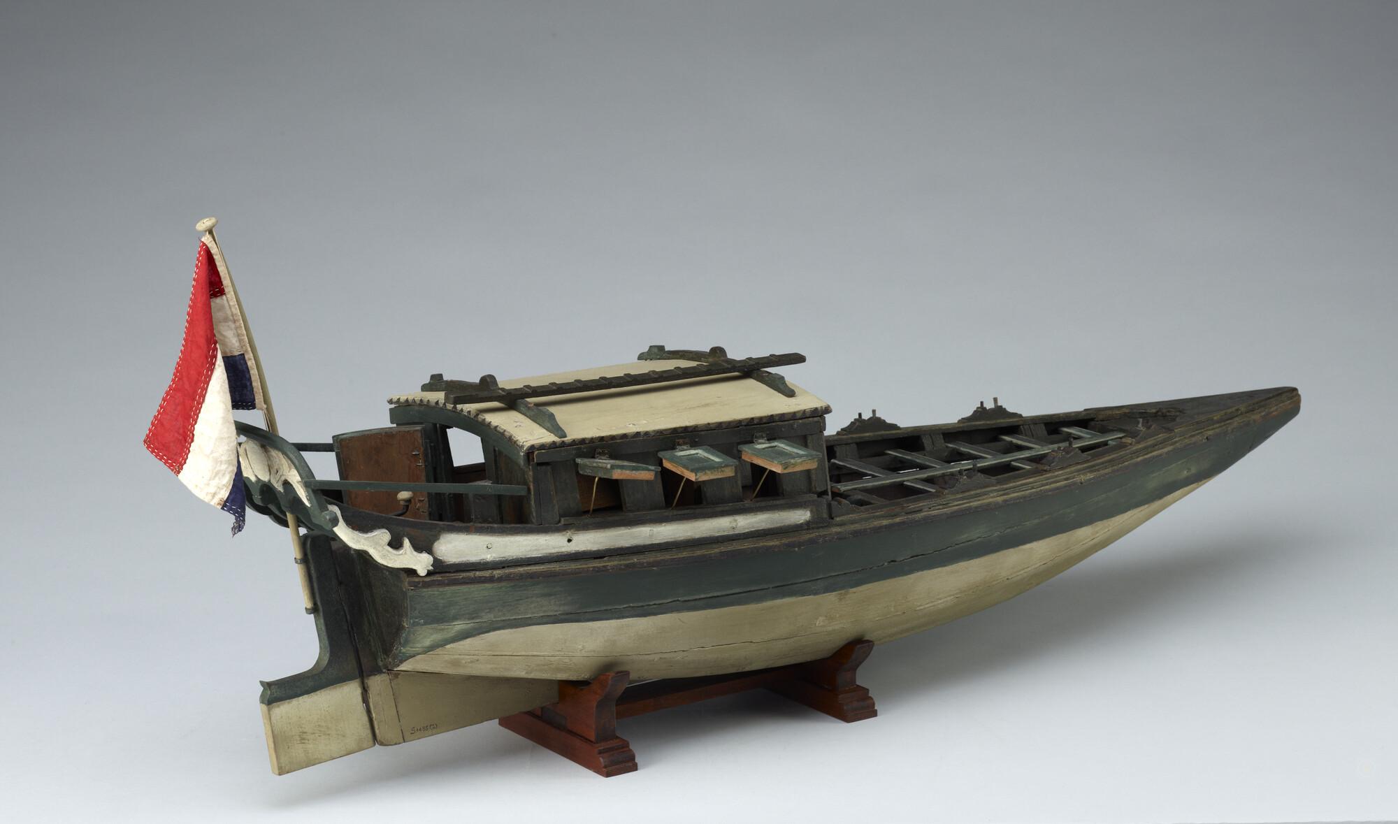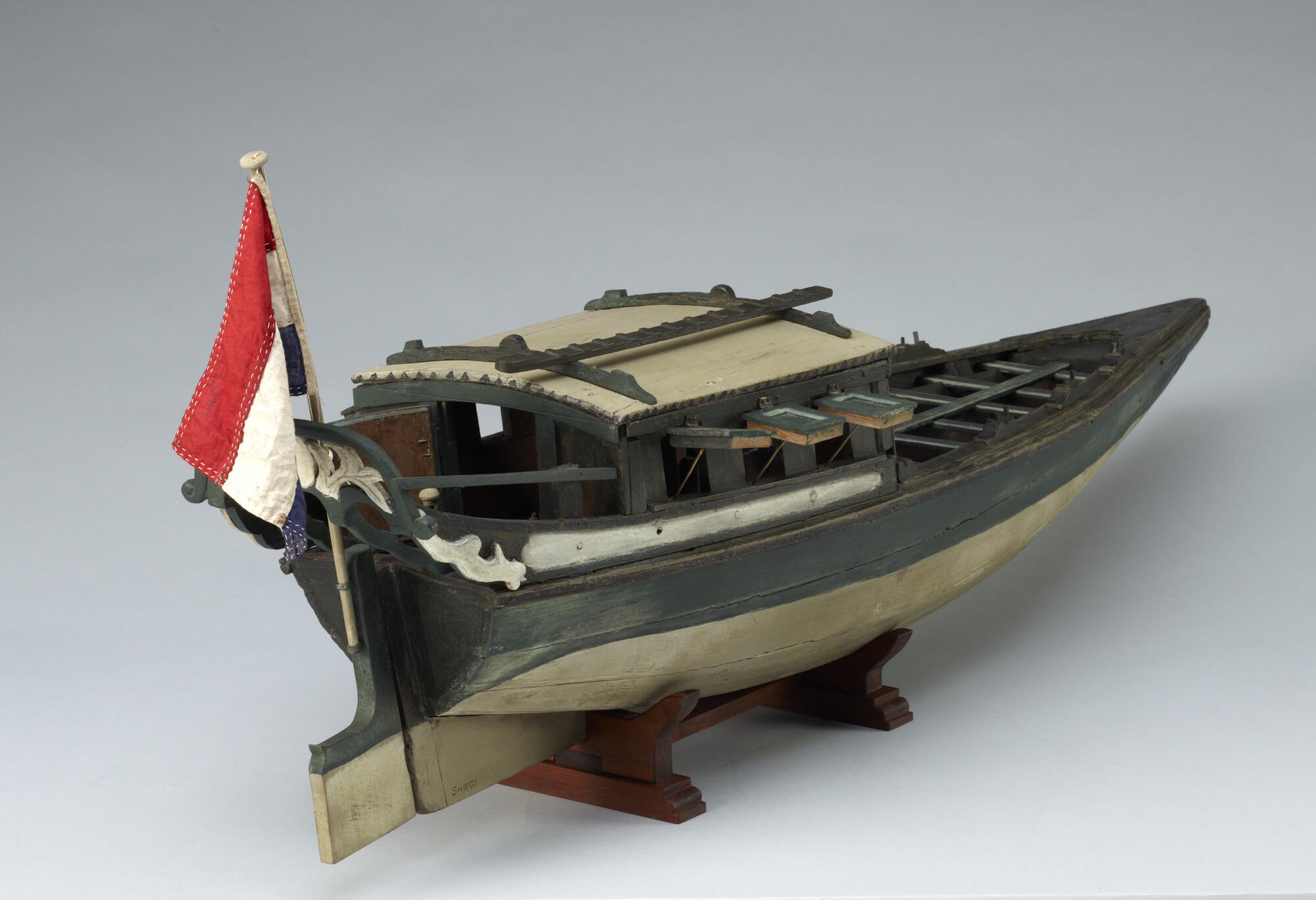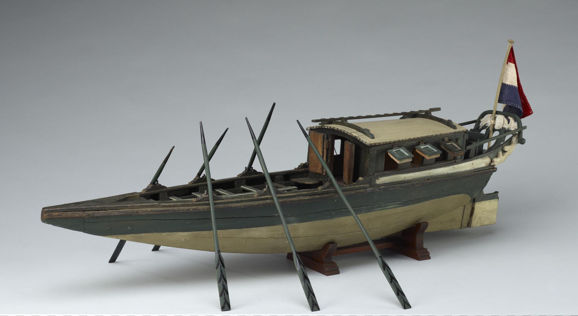 Model van een Surinaams tentjacht of roei-jacht, tweede helft achttiende eeuw.