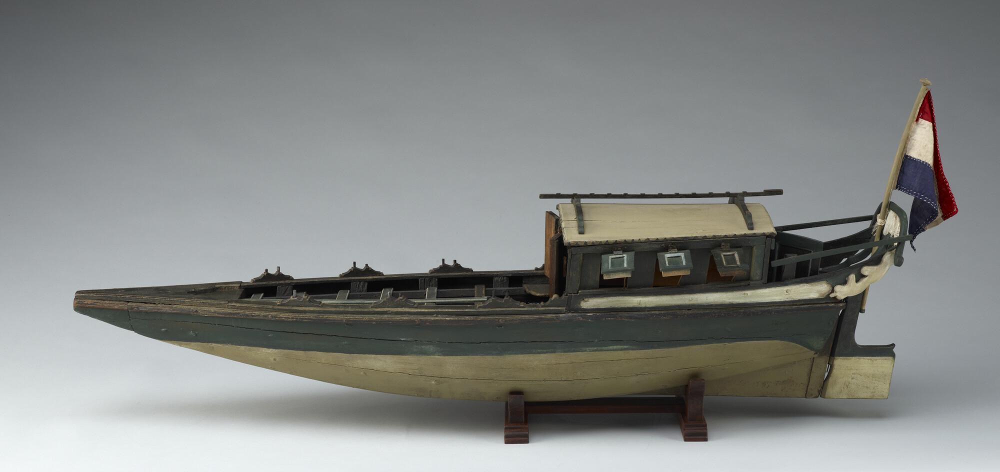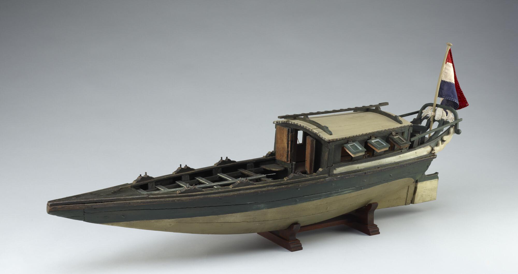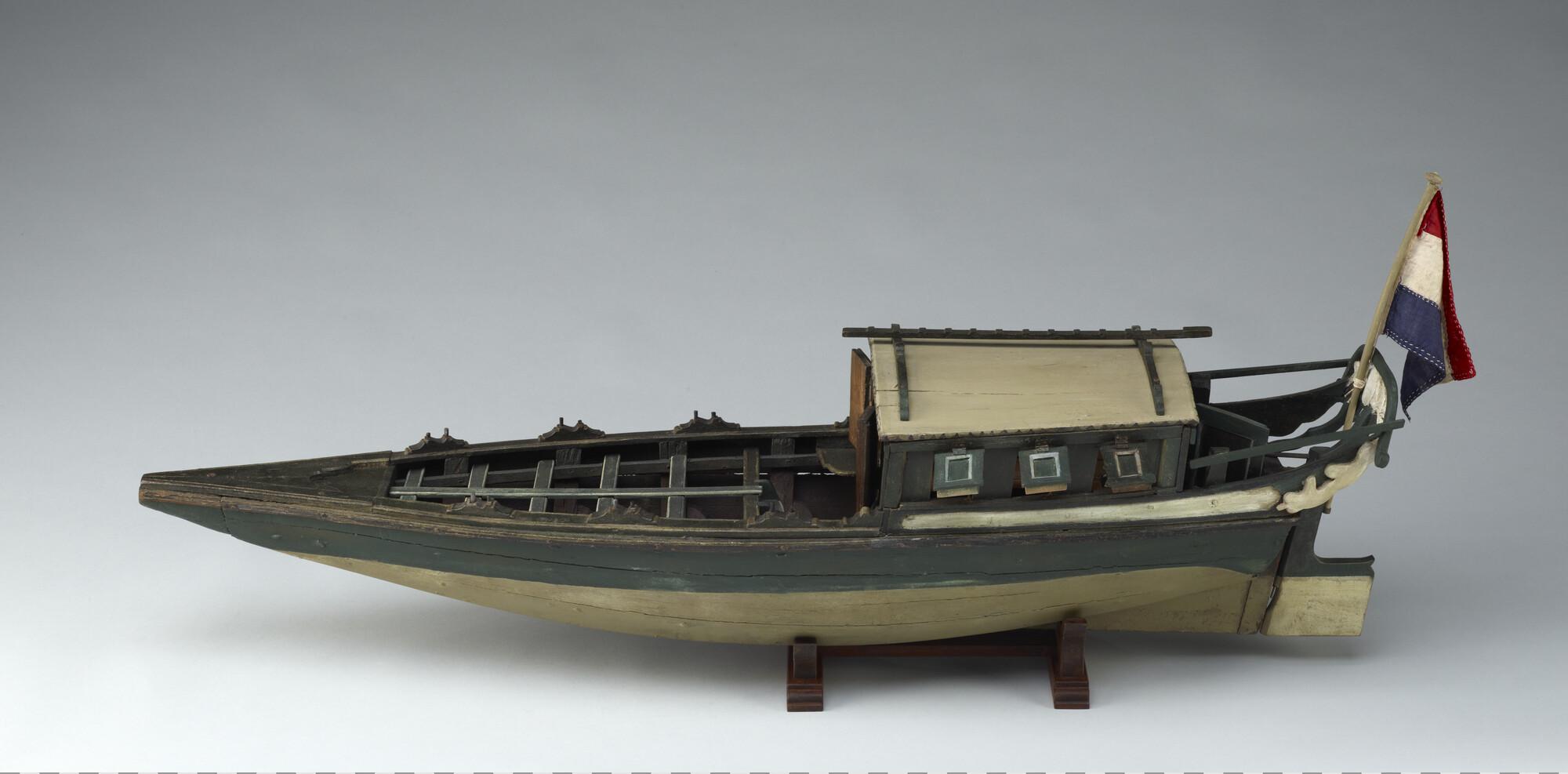 Model van een Surinaams tentjacht of roei-jacht, tweede helft achttiende eeuw.
