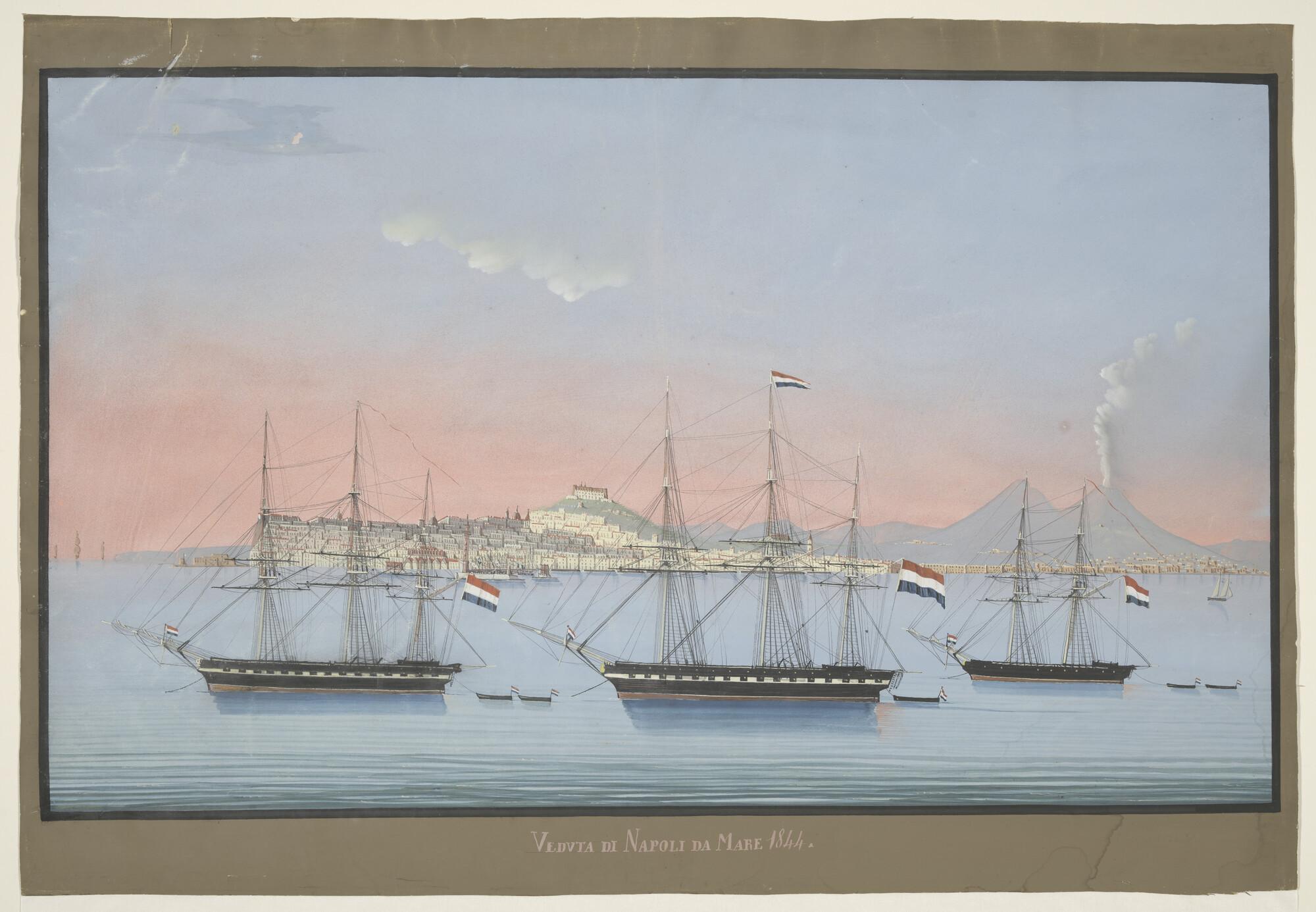 De rede van Napels, vermoedelijk het Middellandse Zee eskader onder bevel van Prins Hendrik op de voorgrond.