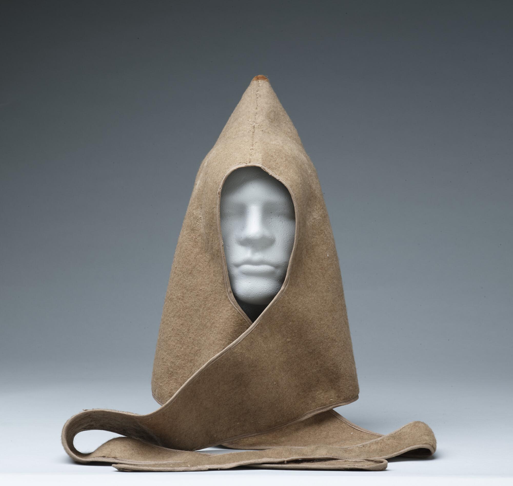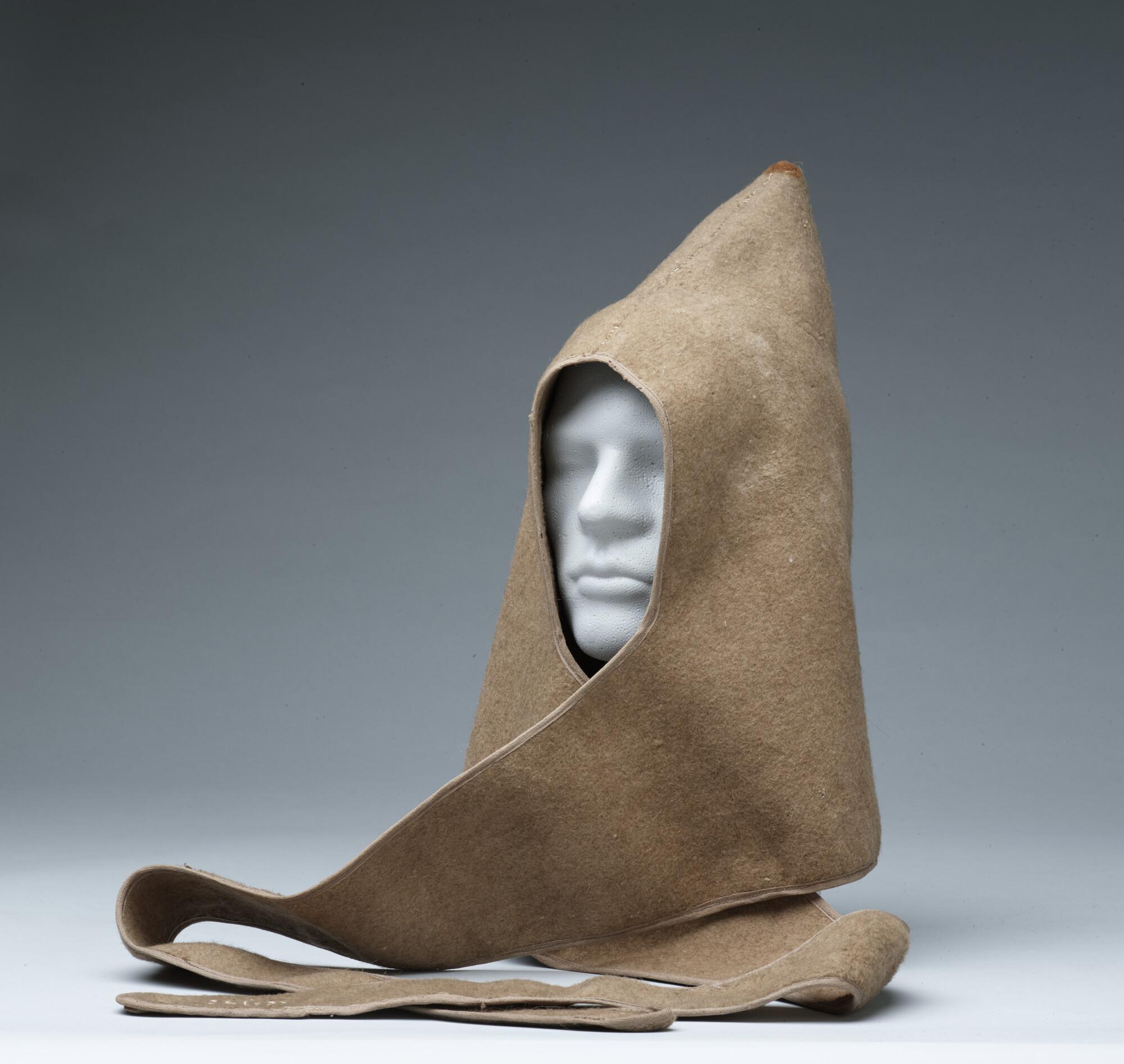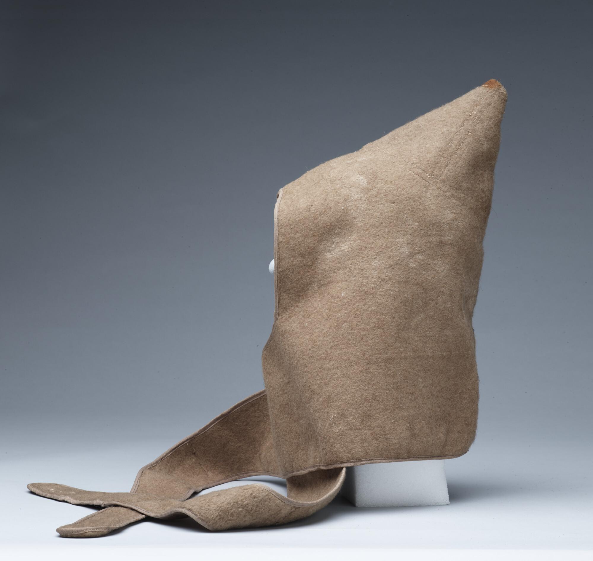 Baschlik, een losse capuchon van zacht vilt met lange slippen die om de hals geslagen werden, gedragen door Henri Ekama tijdens de Nederlandse Noordpoolexpeditie van 1882 - 1883.