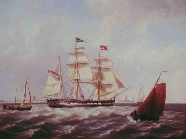 Het raderstoomschip Willem de Eerste, als bark getuigd en Texel verlatend.