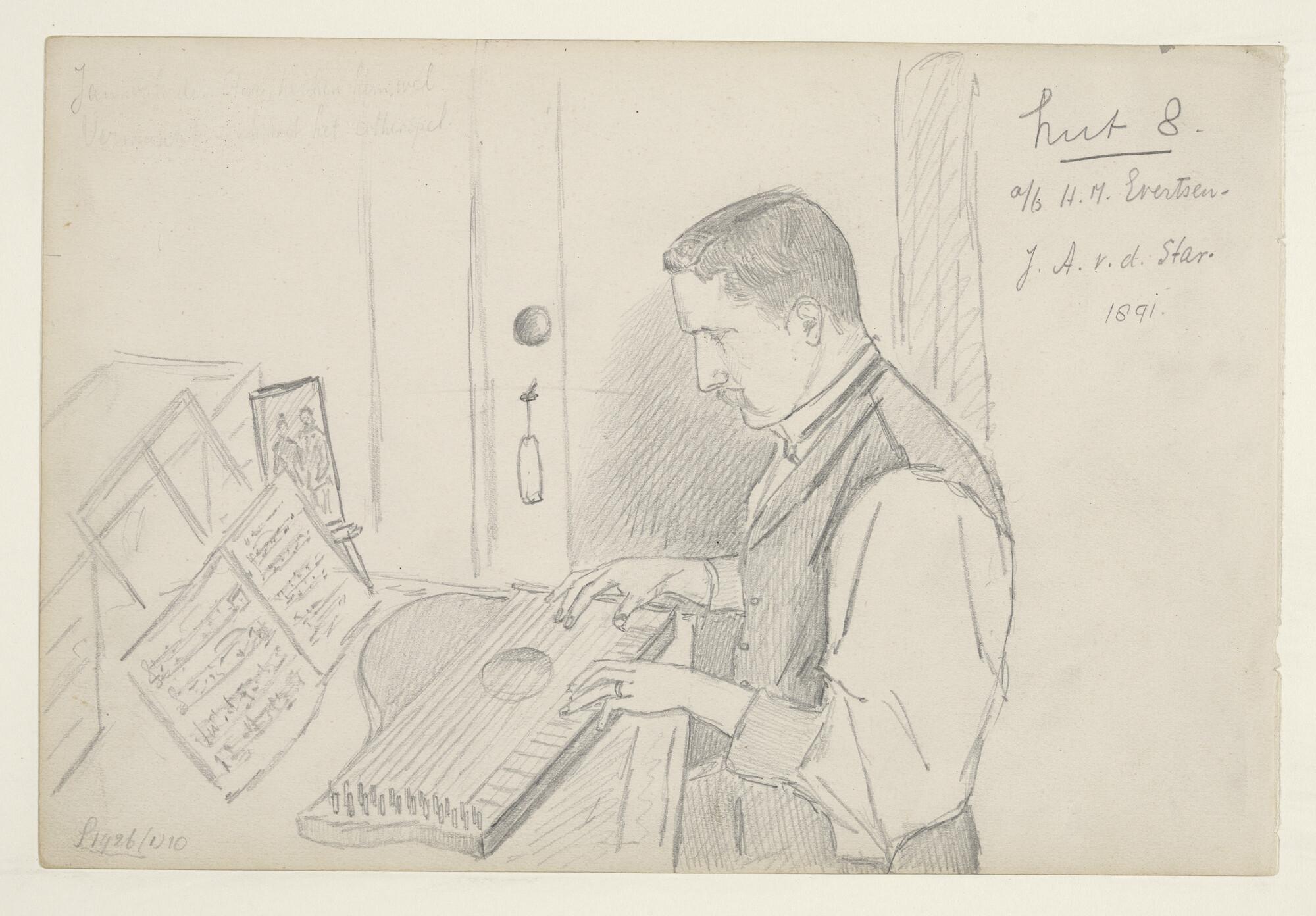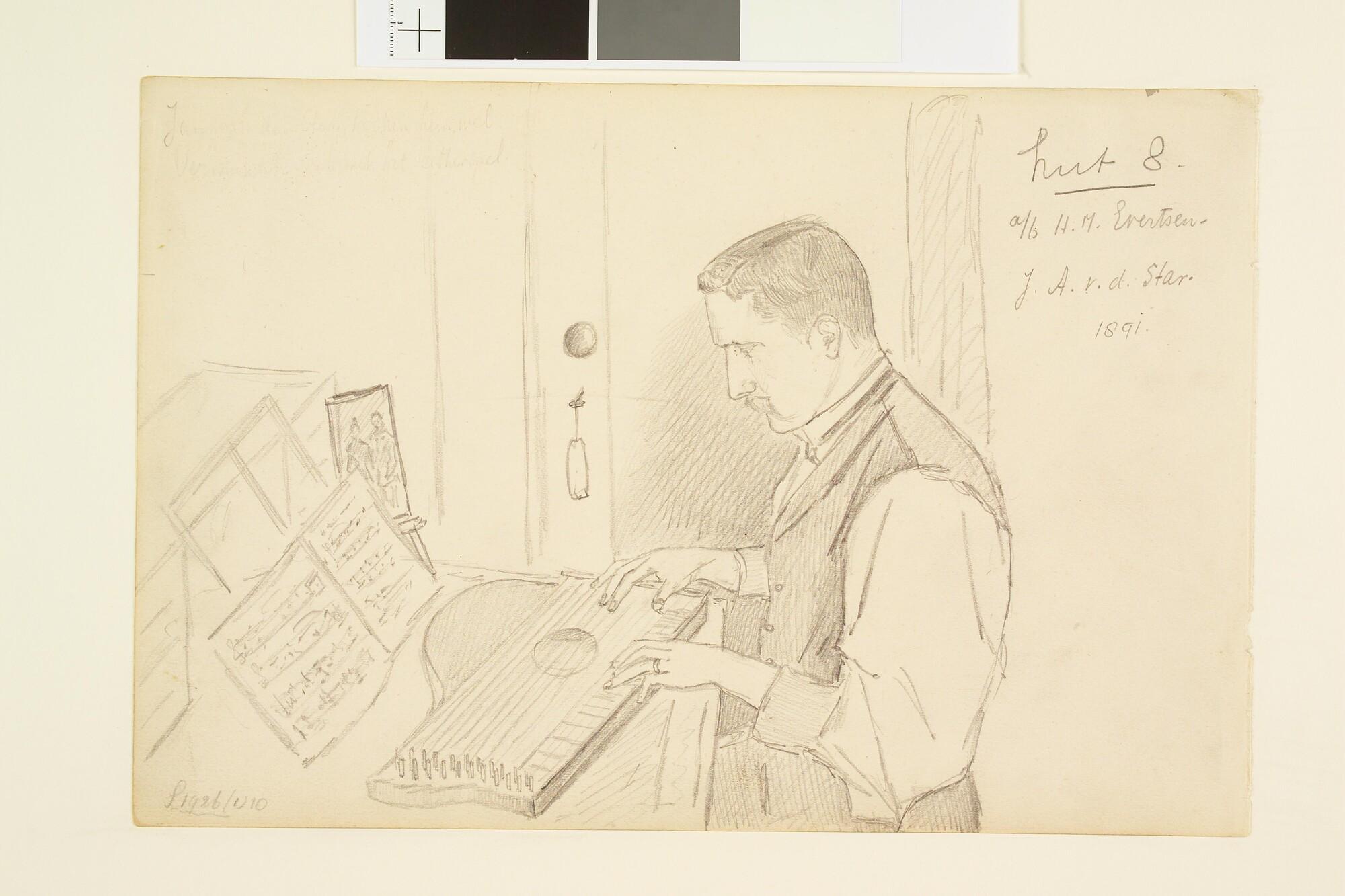 Luitenant-ter-Zee 2e klasse J.A. van der Star, cither spelend aan boord van Zr.Ms. "Evertsen".