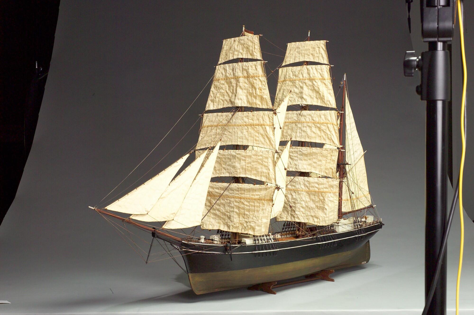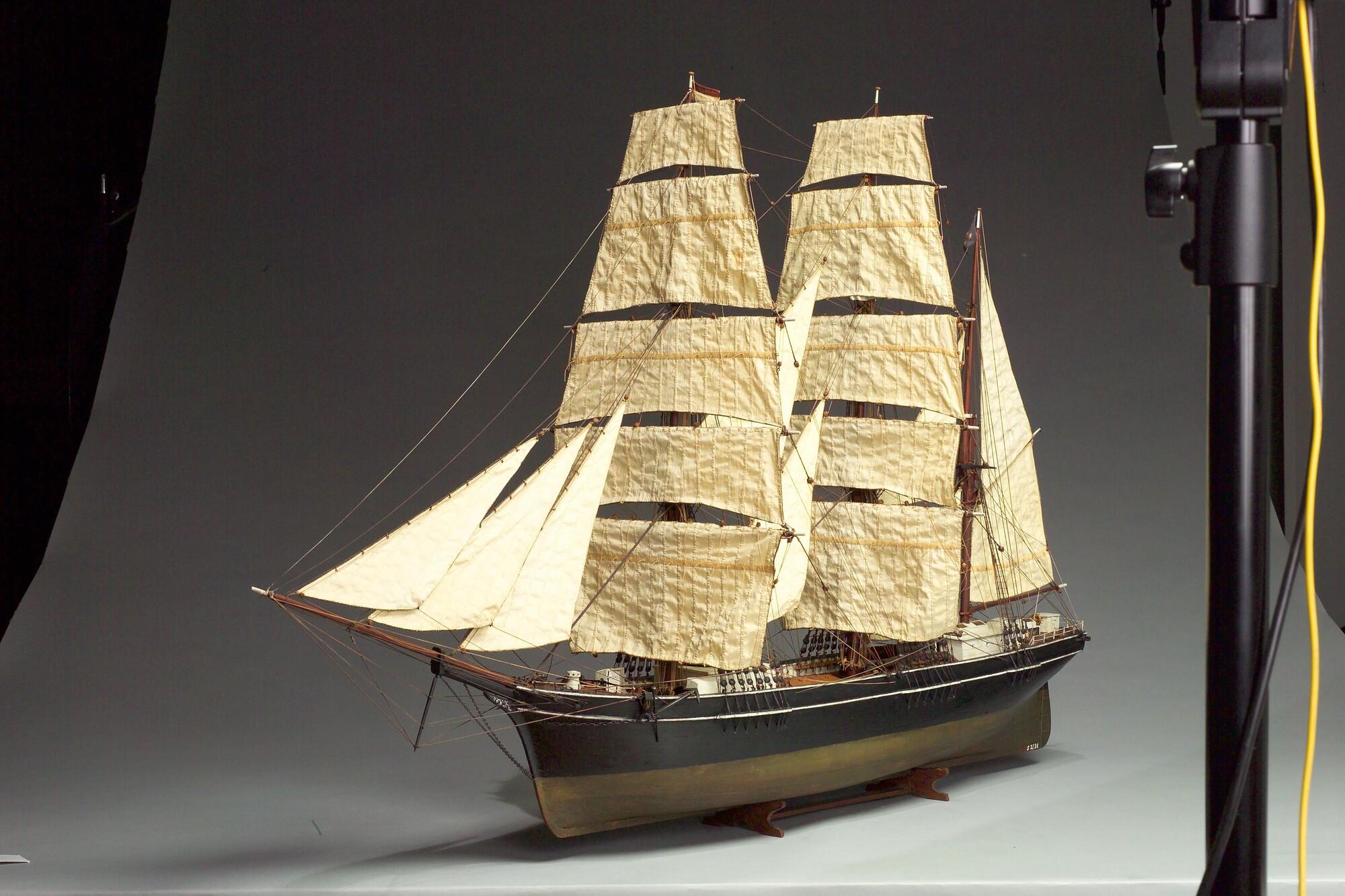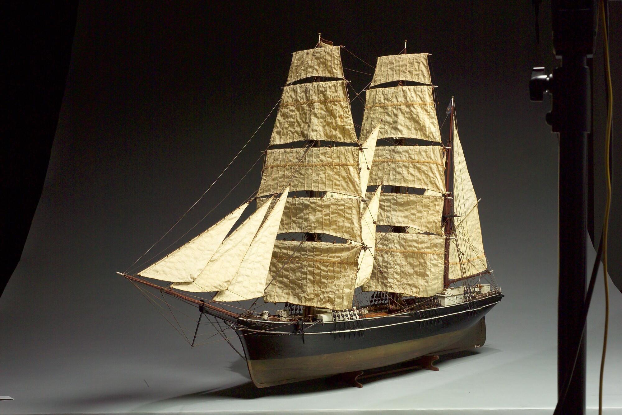 Getuigd model van de klipperbark Thorbecke VII, 1885.