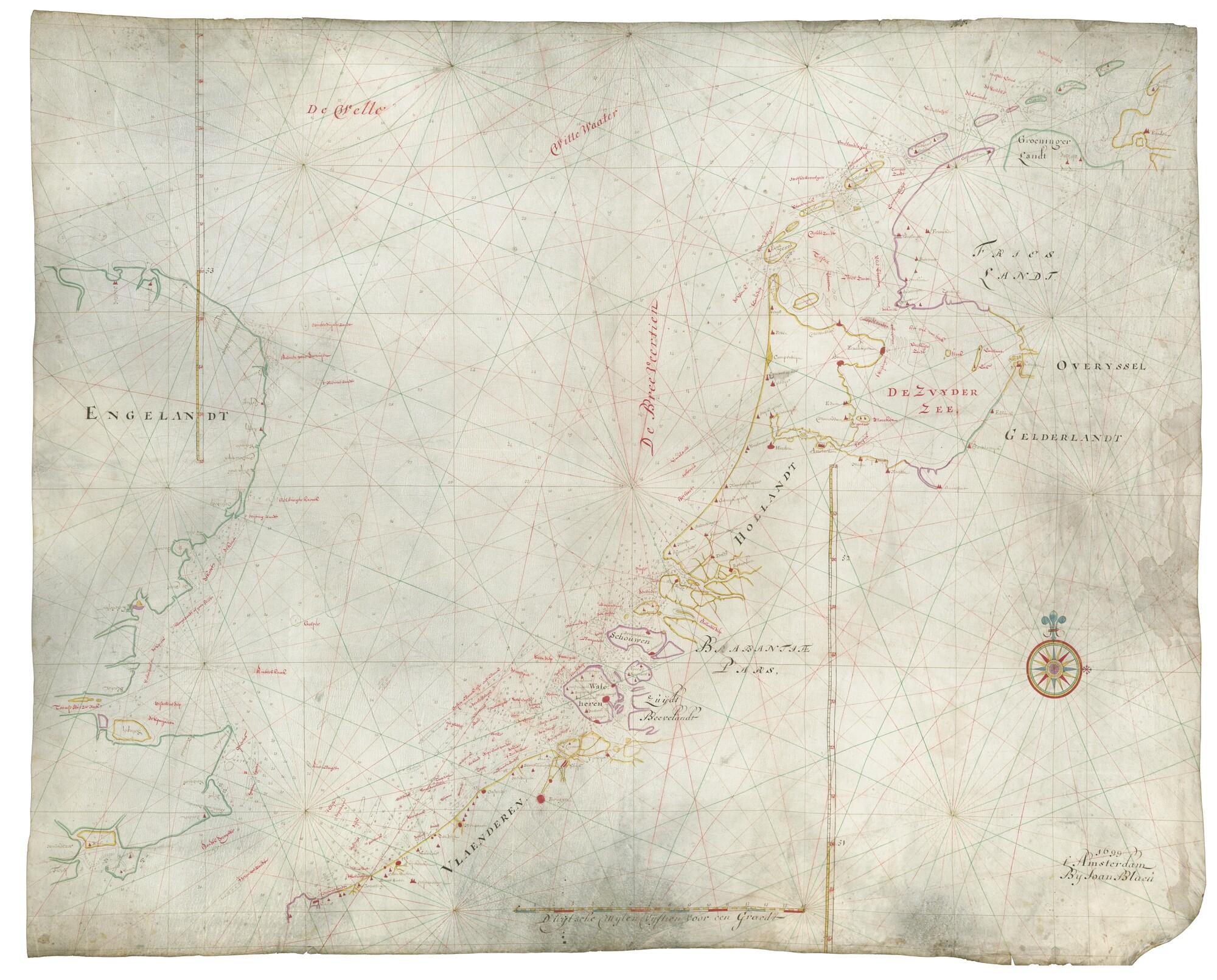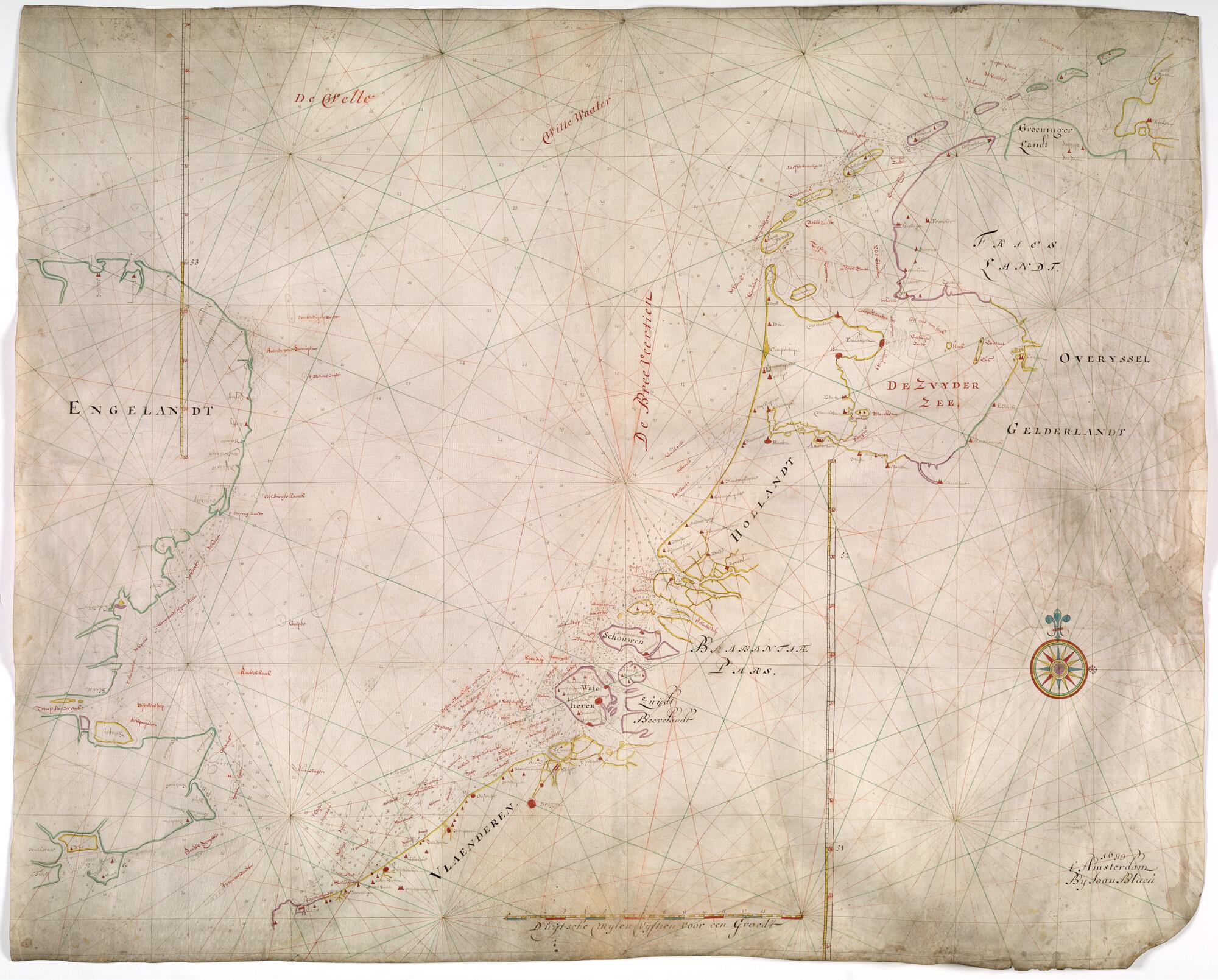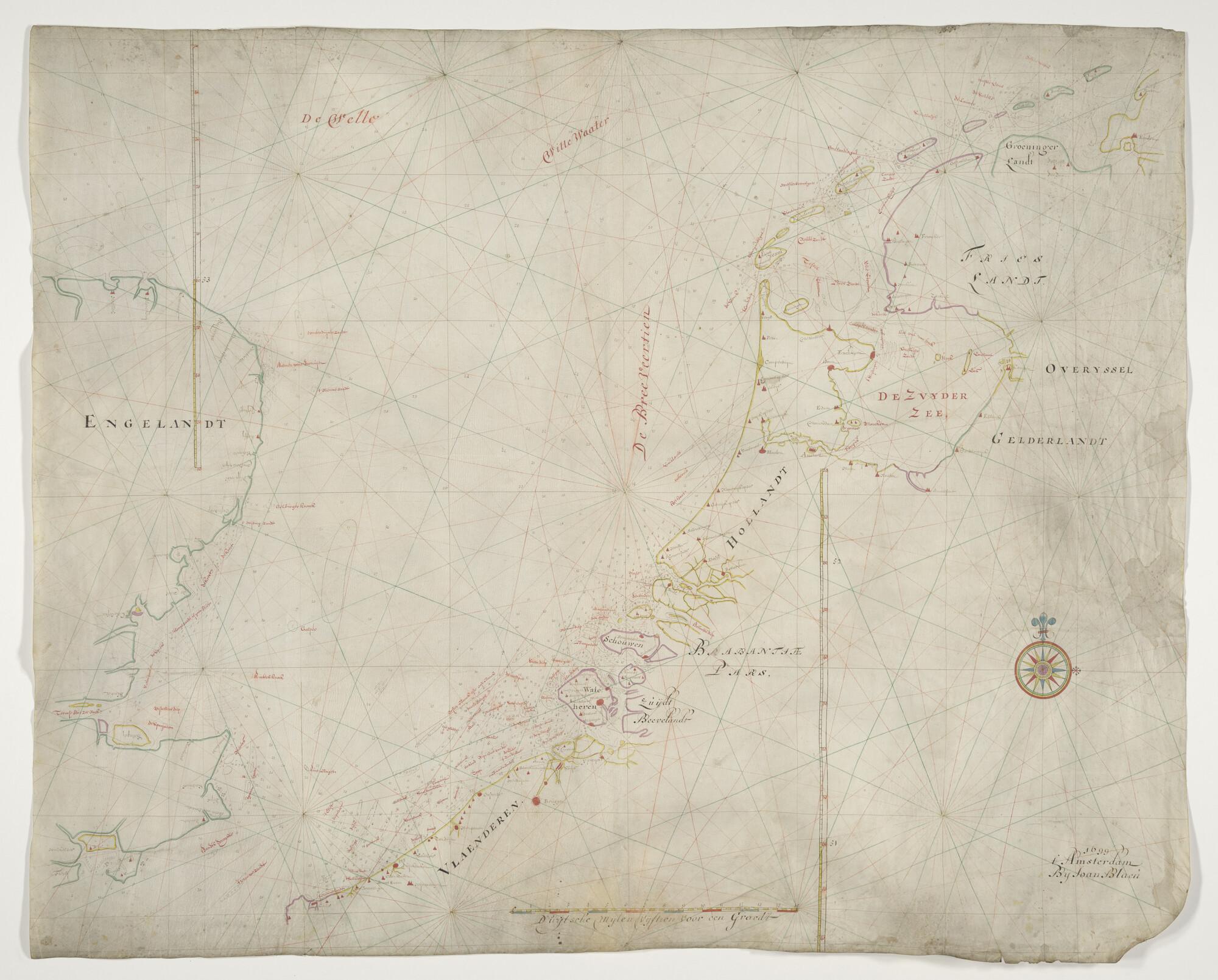 Zeekaart van het zuidelijk deel van de Noordzee en Het Kanaal uit 1699, door Joan Blaeu te Amsterdam (schaal 1 op 450.000).
