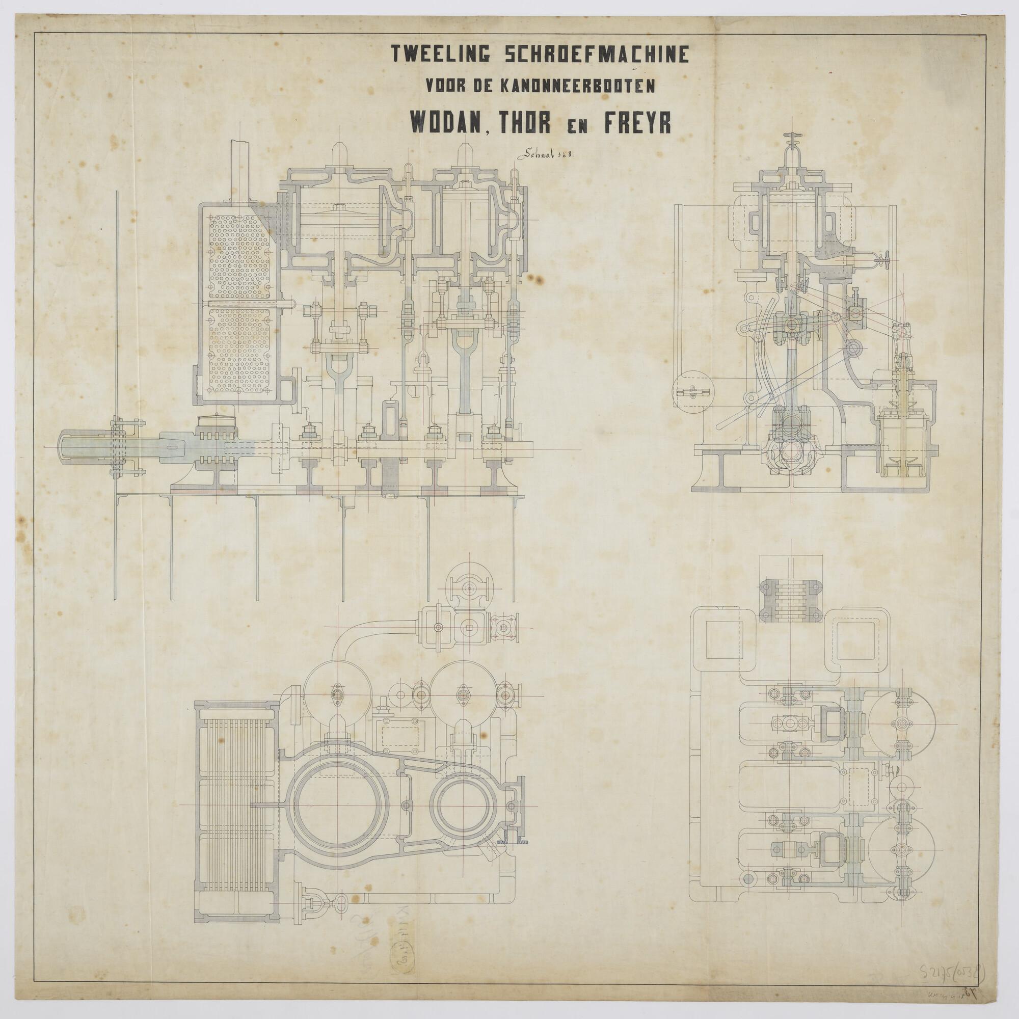 Tweeling schroefmachine van de stoomkanonneerboten Zr.Ms. Wodan, Zr.Ms. Thor en Zr.Ms. Freyr