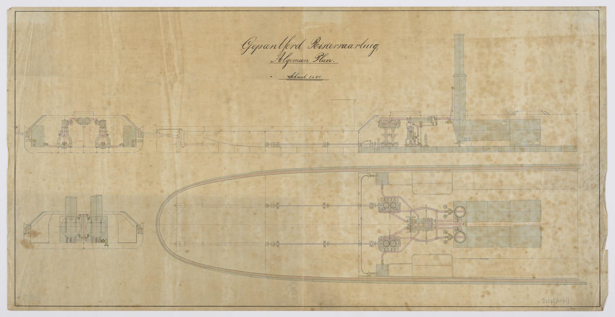 Machinekamer en ketelruim van een gepantserd riviervaartuig (schaal 1:40).
