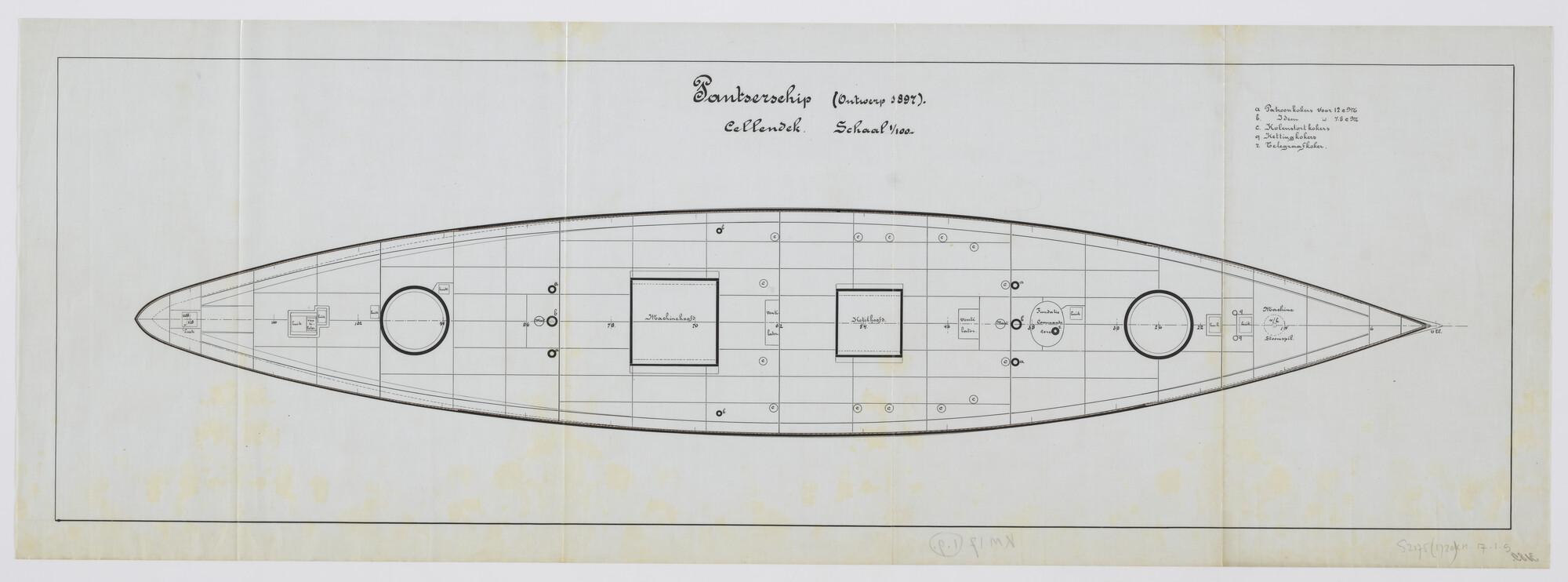 Bovenaanzicht van het cellendek van het pantserschip ontwerp 1897