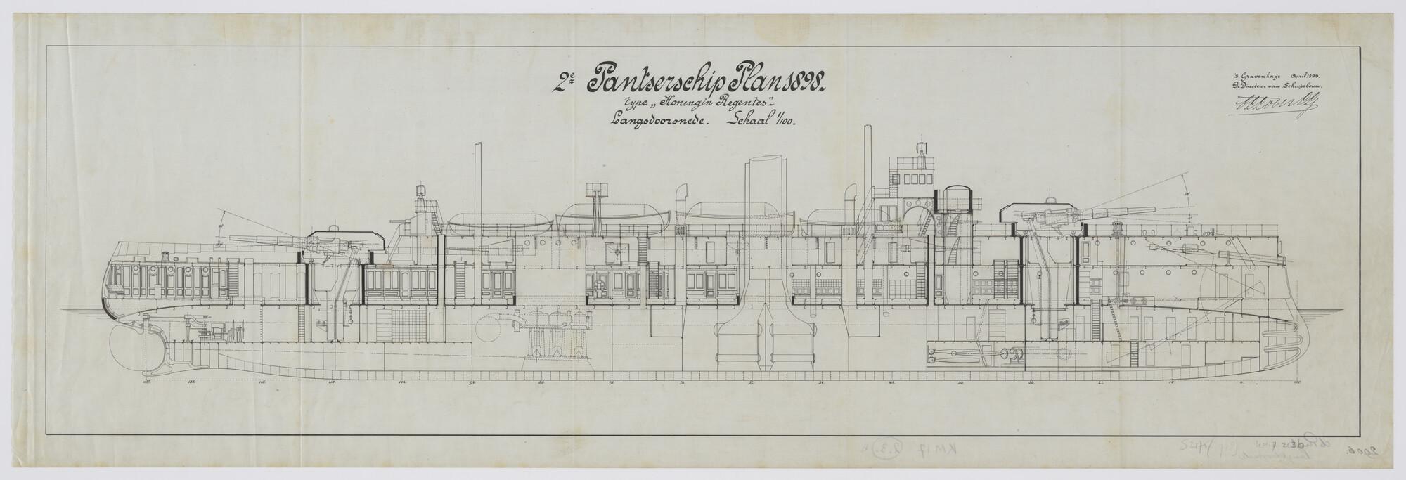 Langsdoorsnede van het 2de pantserschip plan 1898 type 'Koningin Regentes'