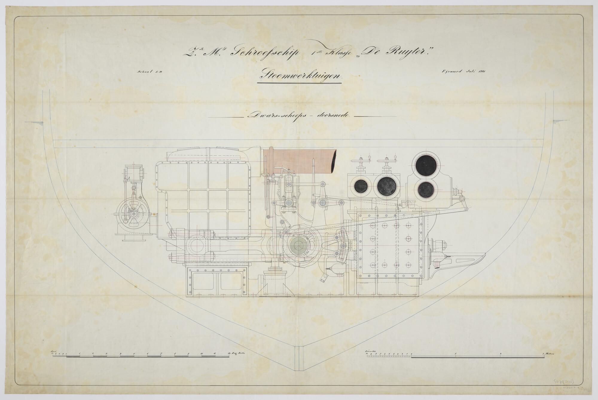Dwarsdoorsnede over spant 56 van de hoofdstoommachine van het schroefstoomschip der eerste klasse Zr.Ms. De Ruyter (1879)