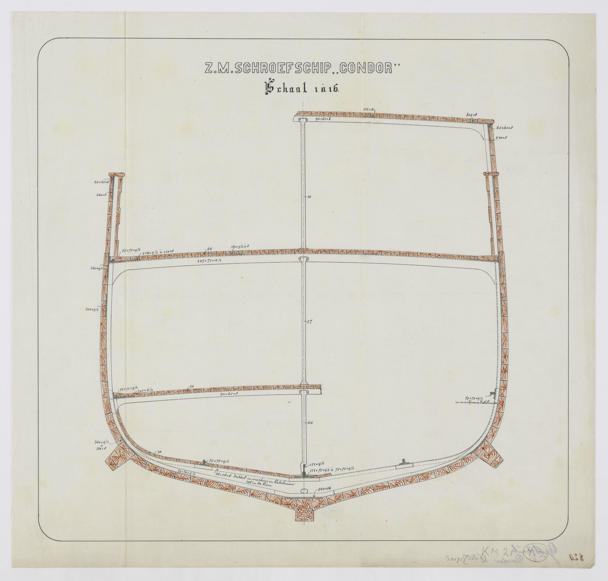 Grootspanttekening van het schroefstoomschip Zr.Ms. Condor