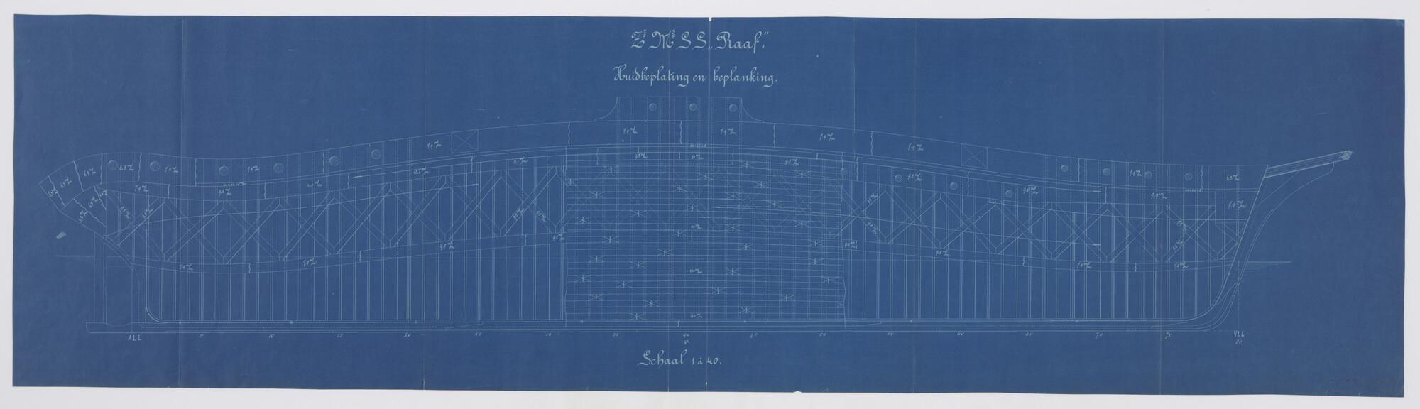 Huidbeplating en beplanking stoomschip voor de Gouvernementsmarine Zr.Ms. 'Raaf'