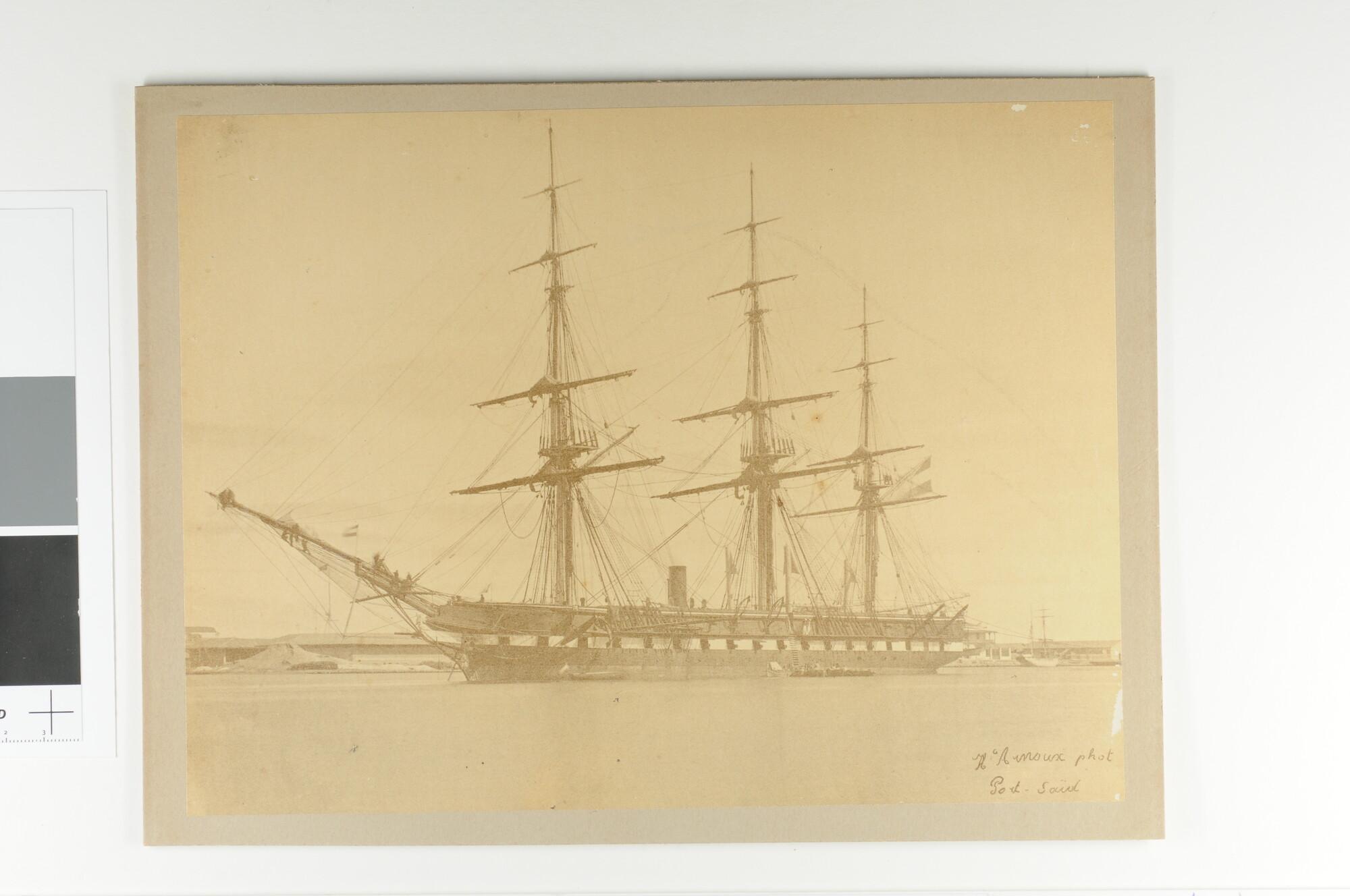 Het fregat Zr.Ms. "Zeeland" voor anker liggende in Port Said, 1873.