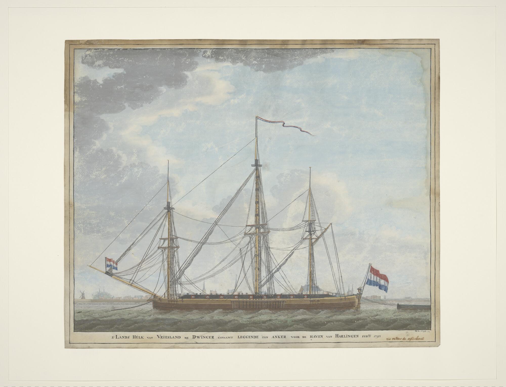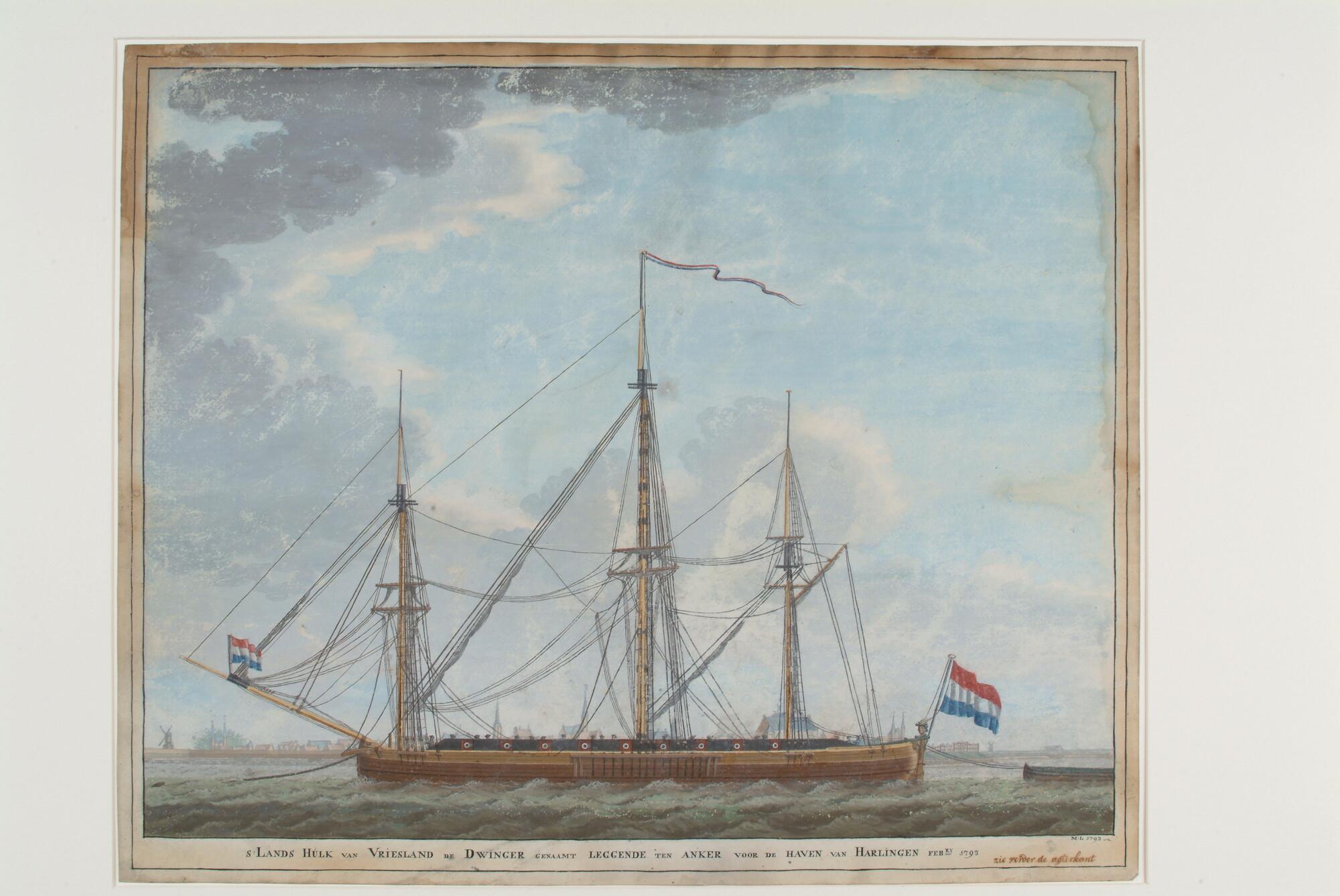 's Lands hulk "De Dwinger", als wachtschip voor de verdediging van de kust, liggende ter rede van Harlingen