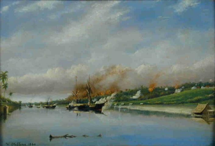 Beschieting van de versterkingen van de Sultan van Djambi, 6 september 1858.
