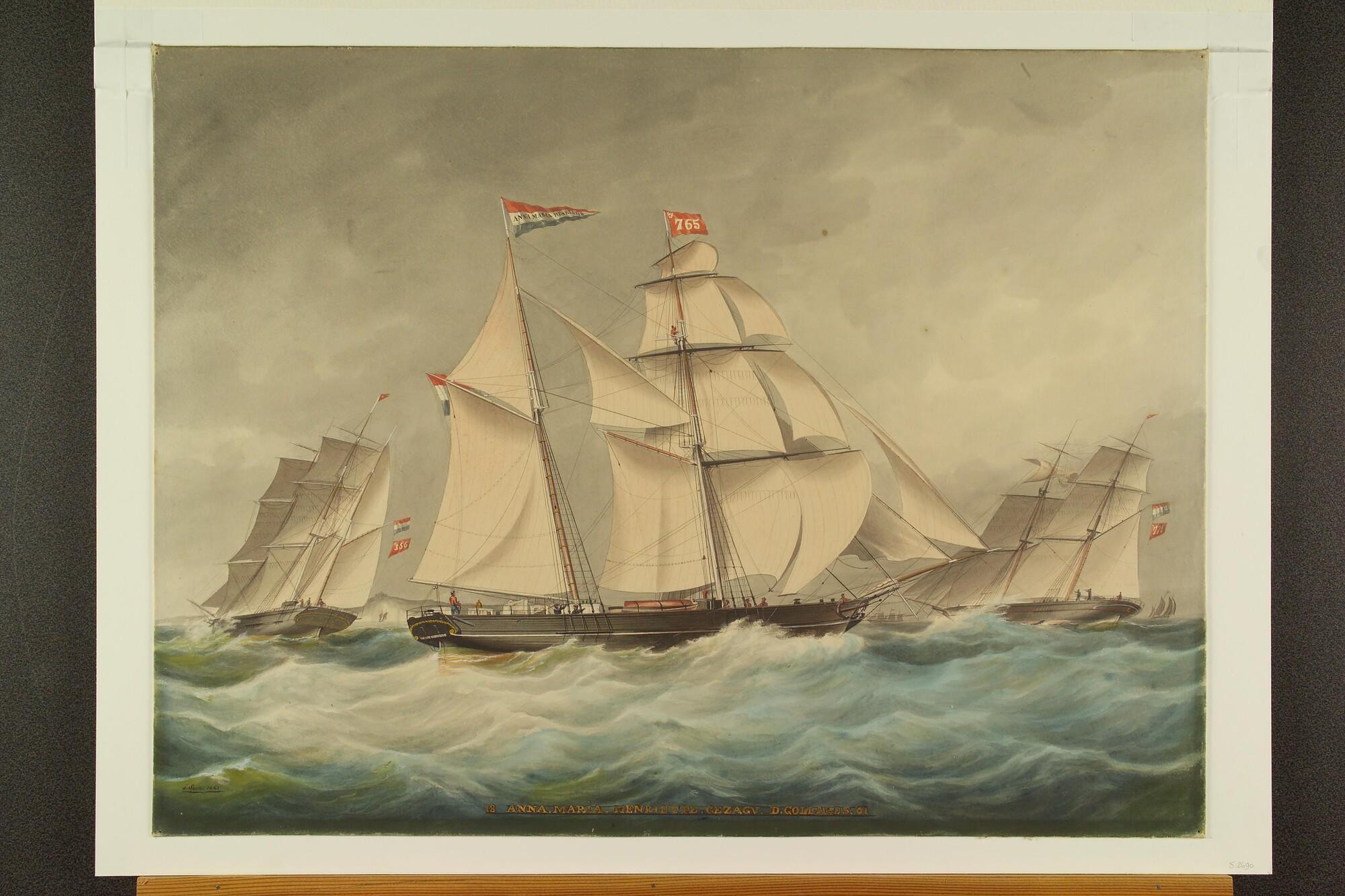 Het brikschip Anna Maria Henriette op volle zee.