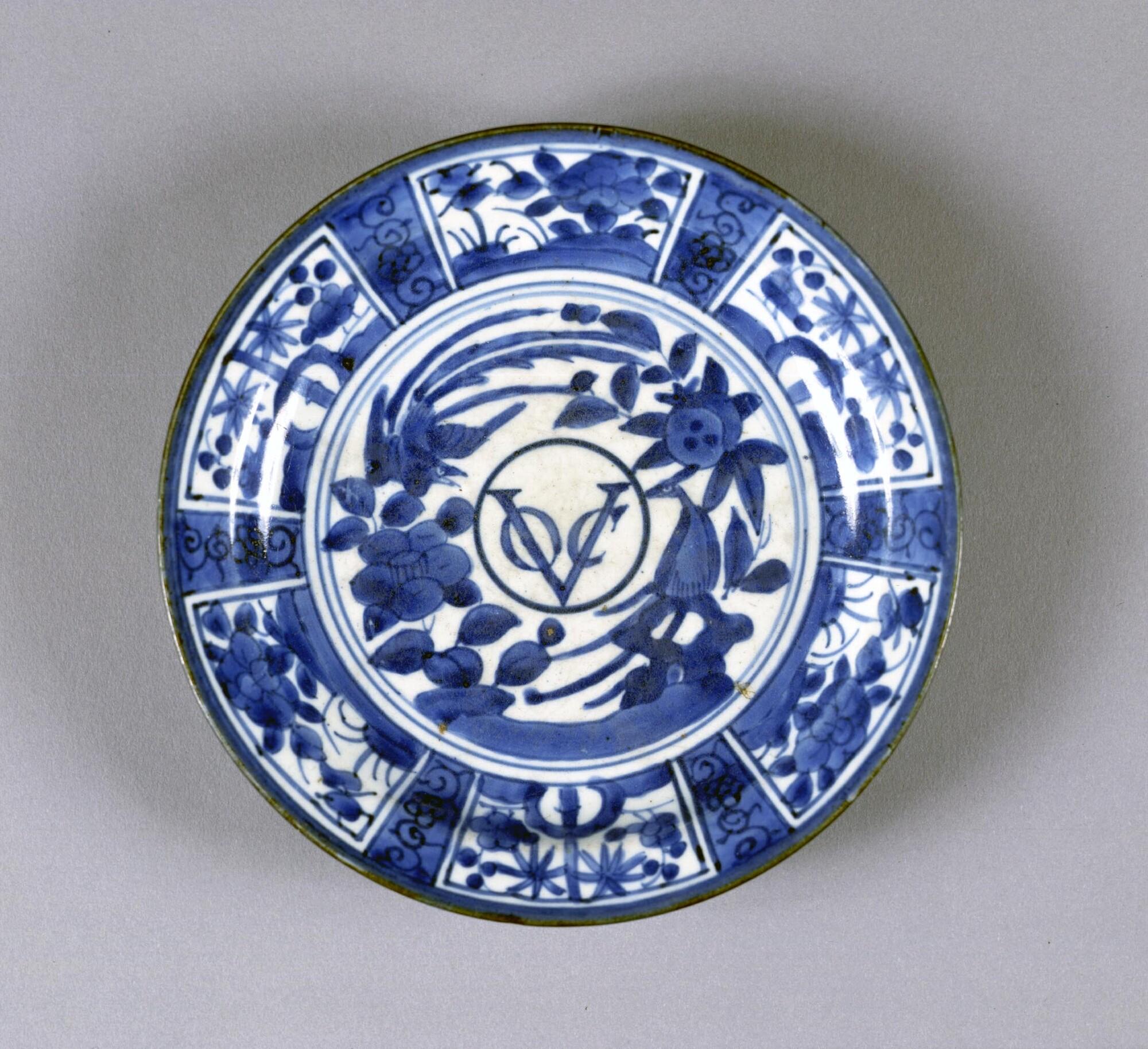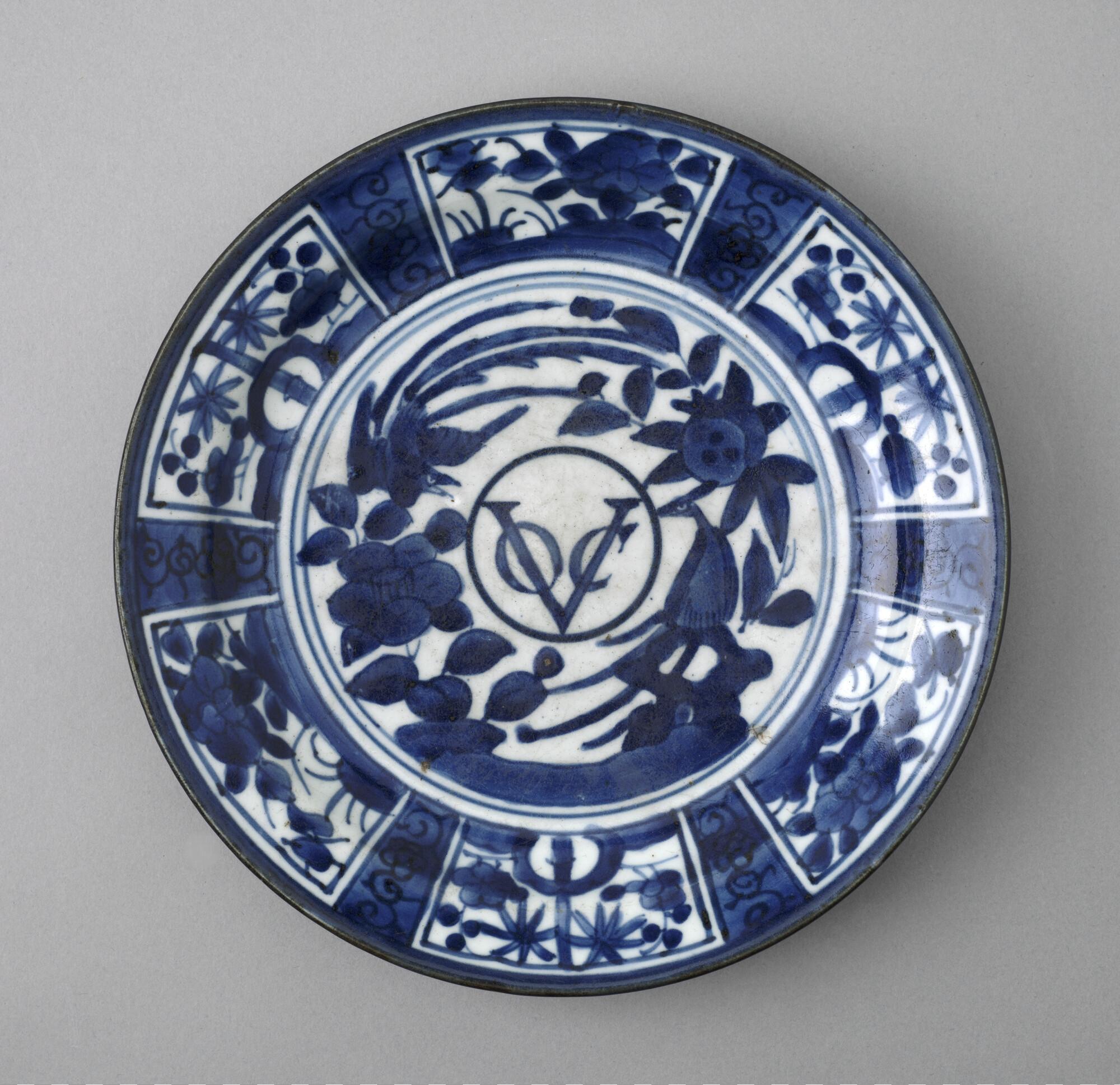 Bord van Japans porselein, met in het midden het monogram van de VOC