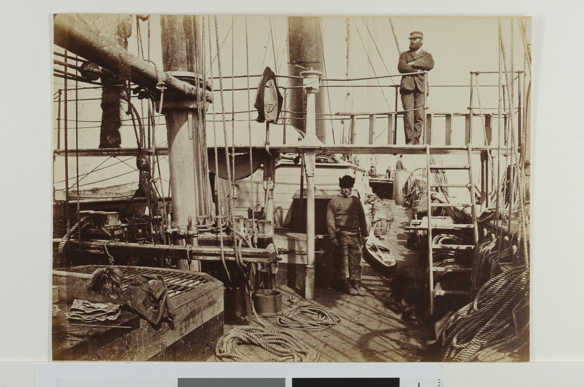 '"Pandora" at Disco': Dekaanzicht en brug van de "Pandora". De foto is genomen tijdens het verblijf in Disco.