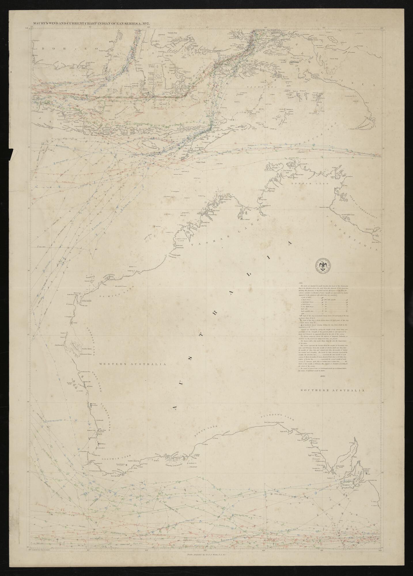 Gekleurde Maury's wind- en stroomkaart van de Indische Oceaan, no. 7 serie A