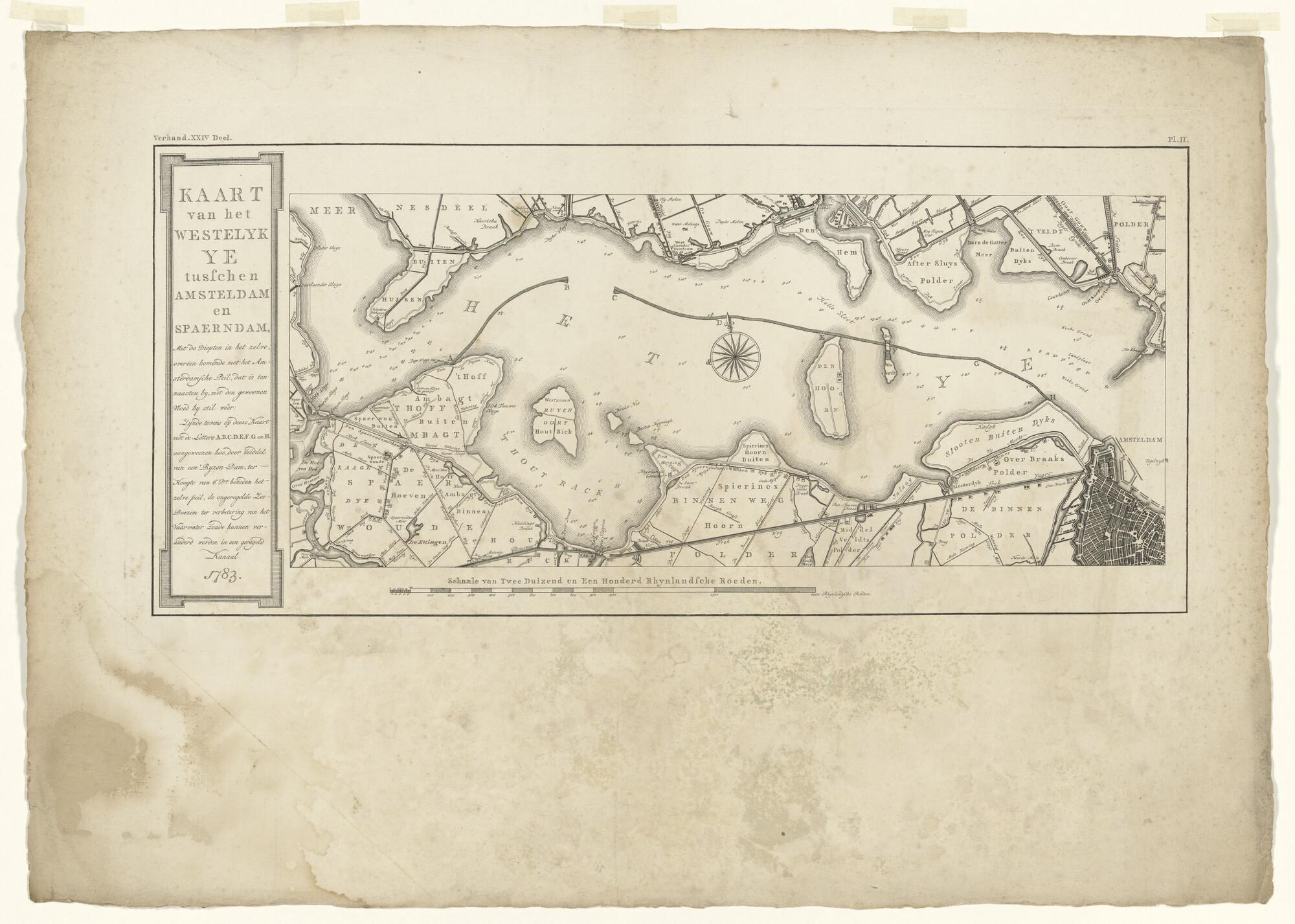 Kaart van het westelijk IJ tussen Amsterdam en Spaarndam, anoniem, 1783