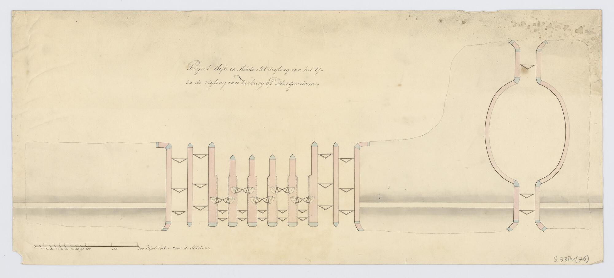Tekening horende bij een prijsvraag in 1823 voor afsluiting van het IJ. Onbekroond antwoord E.