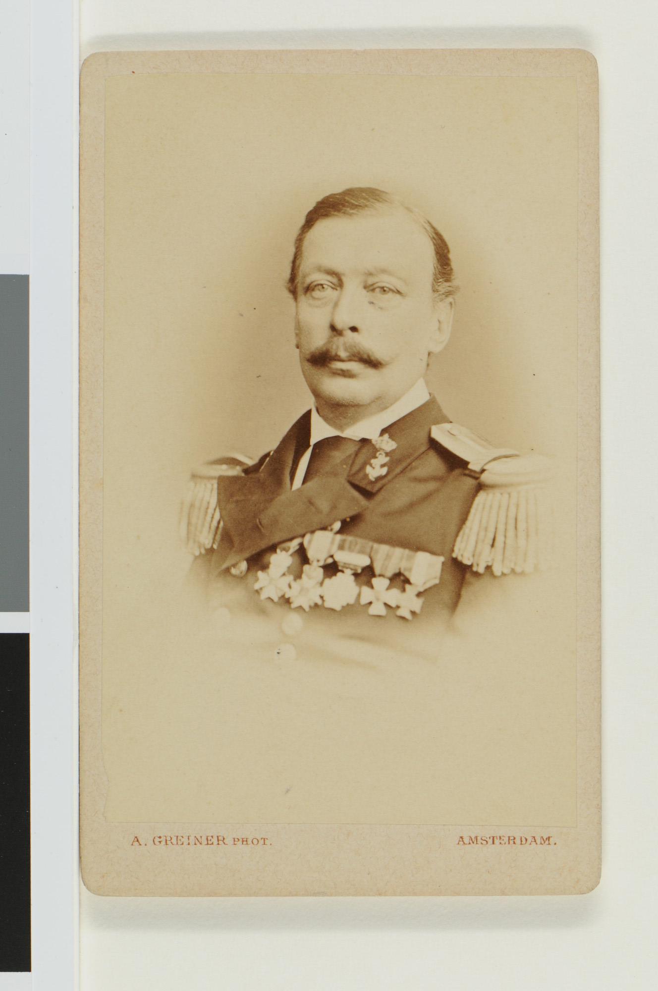 Portretfoto van jonkheer M.W. van Rensselaer Bowier (1822 -1889), Ridder M.W.O. 4e Klasse, vice-admiraal en adjudant van koning Willem III.