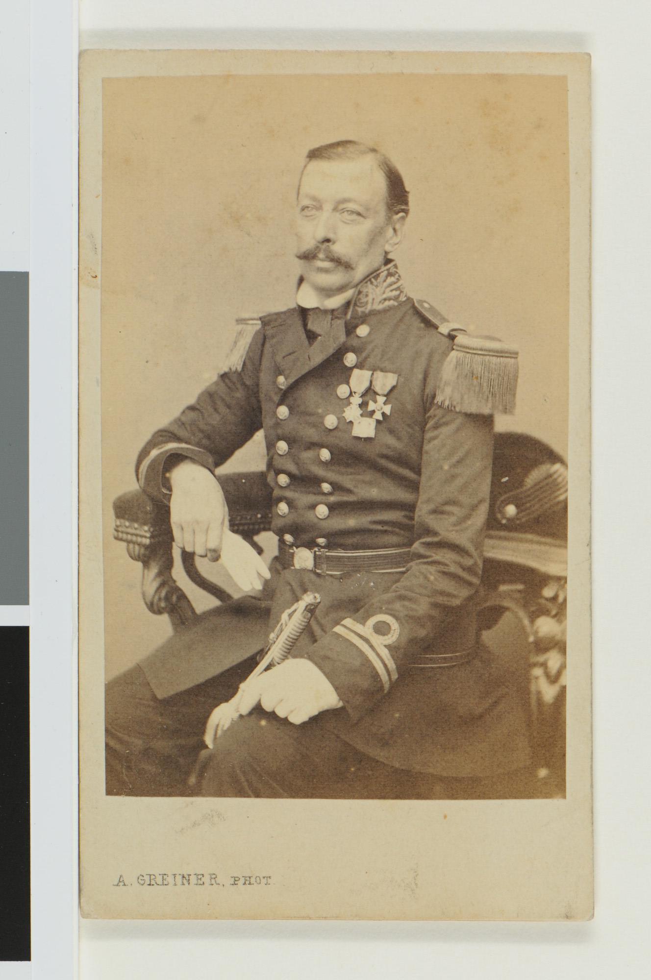 Portretfoto van jonkheer M.W. van Rensselaer Bowier (1822 -1889), Ridder M.W.O. 4e Klasse, vice-admiraal en adjudant in buitengewone dienst van koning Willem III.