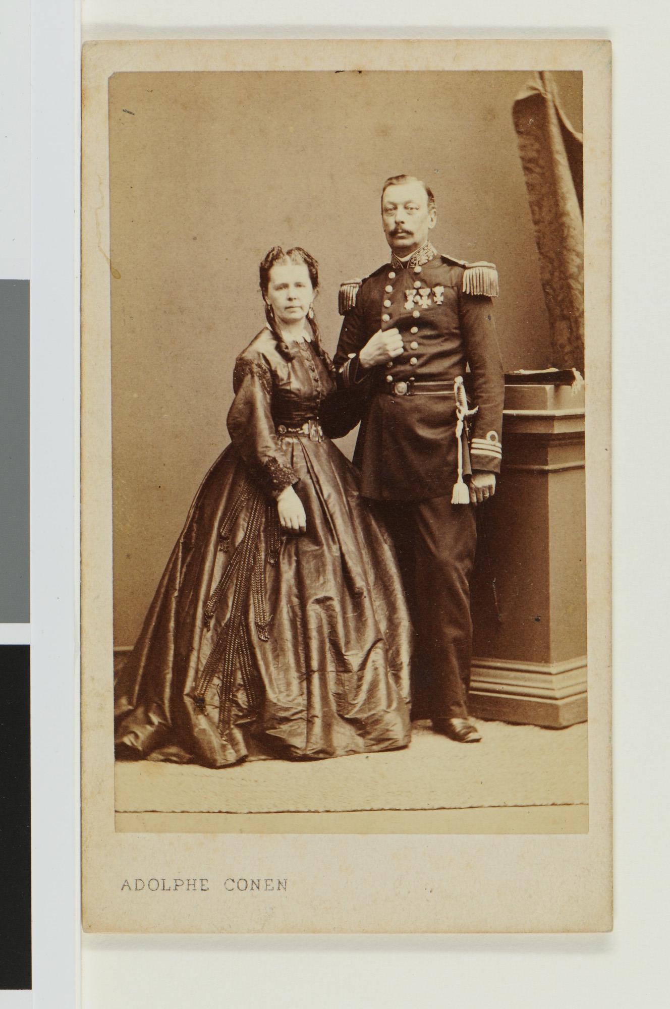 Portretfoto van jonkheer M.W. van Rensselaer Bowier (1822 -1889) en echtgenote. Ridder M.W.O. 4e Klasse, vice-admiraal en adjudant in buitengewone dienst van koning Willem III.