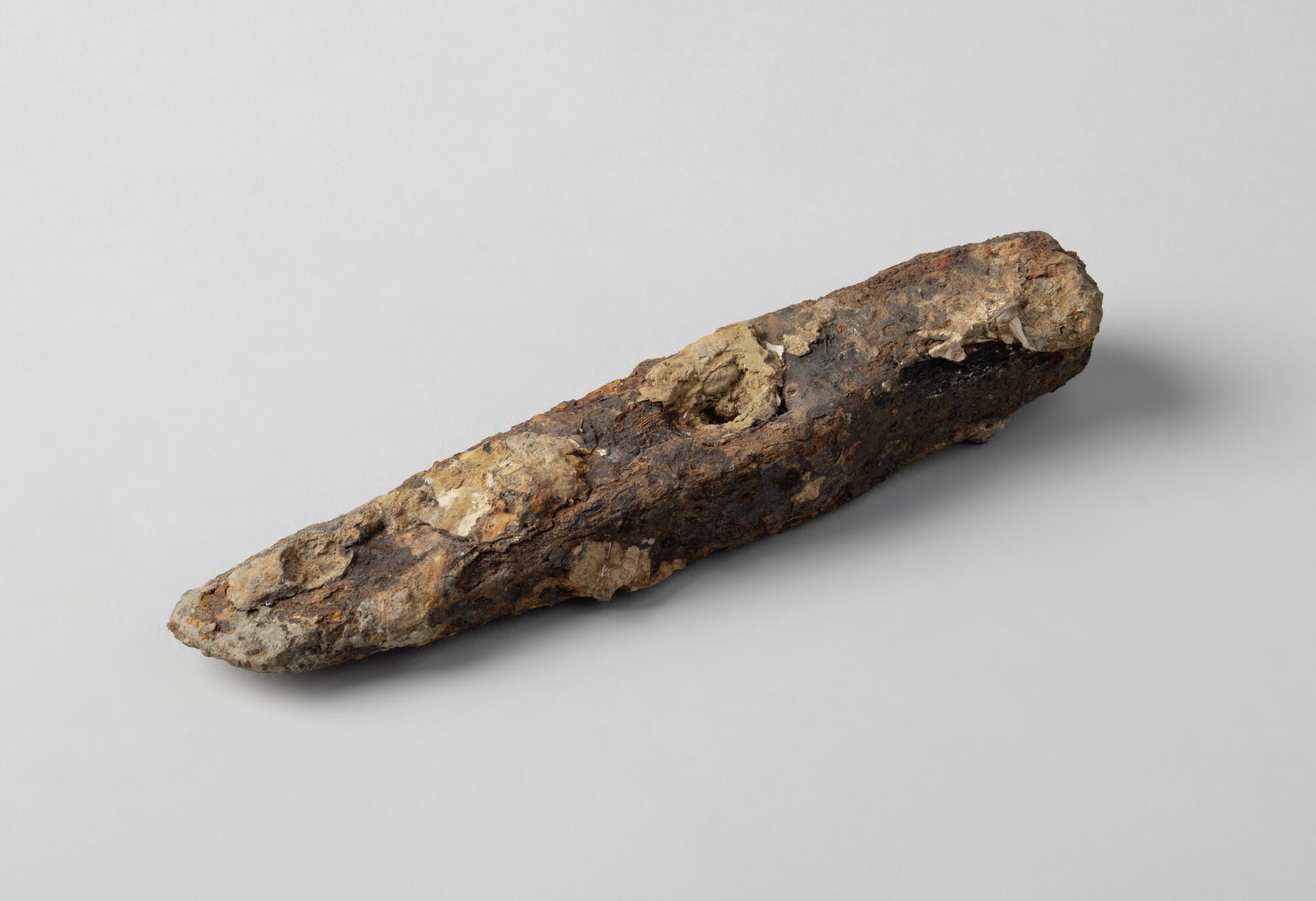 Hamer zonder steel. Gevonden in zeeklei van opgehoogd terrein te Amsterdam, vermoedelijk dus van een schip.