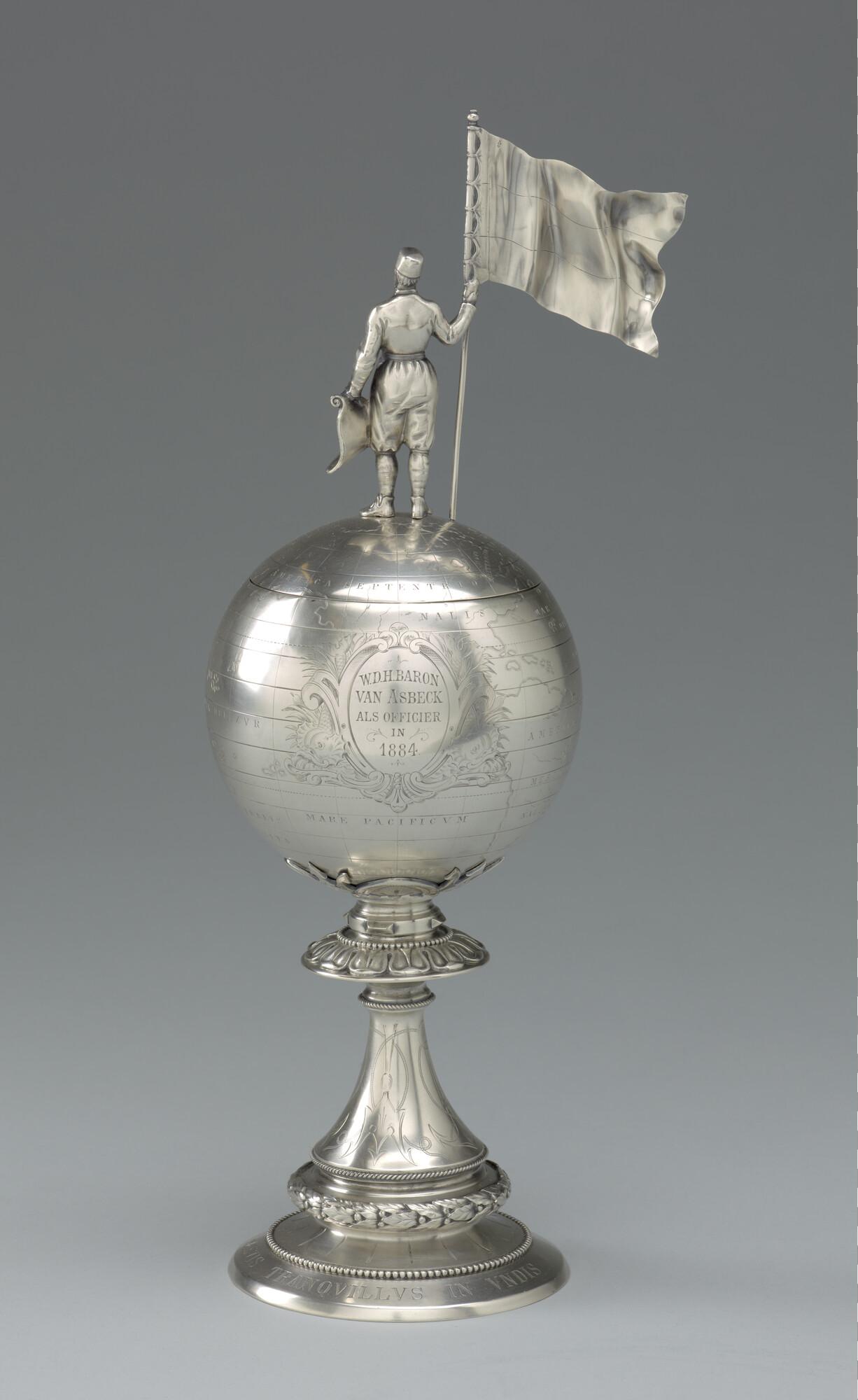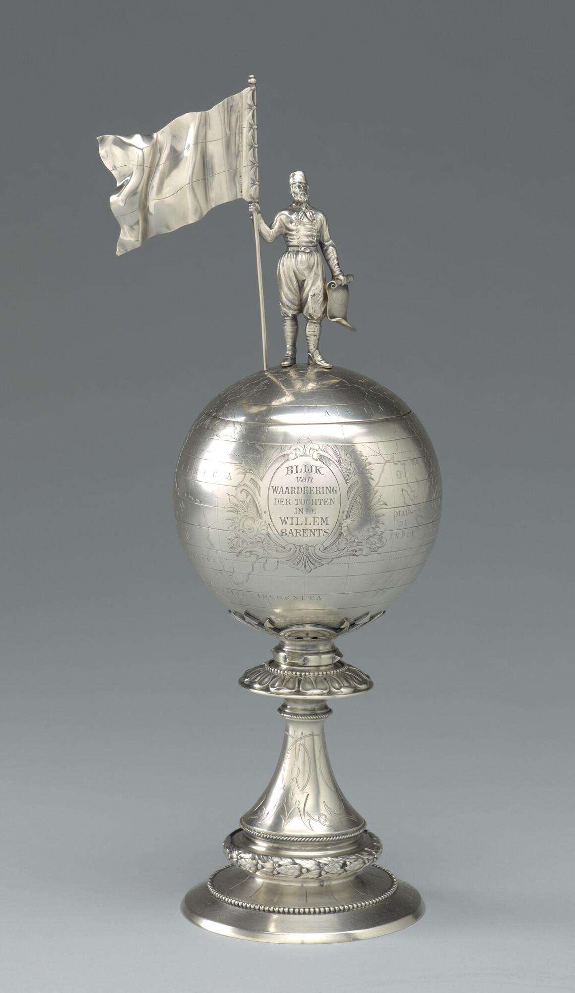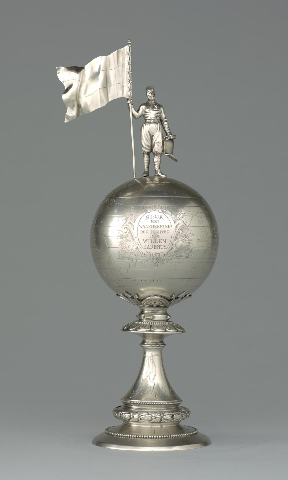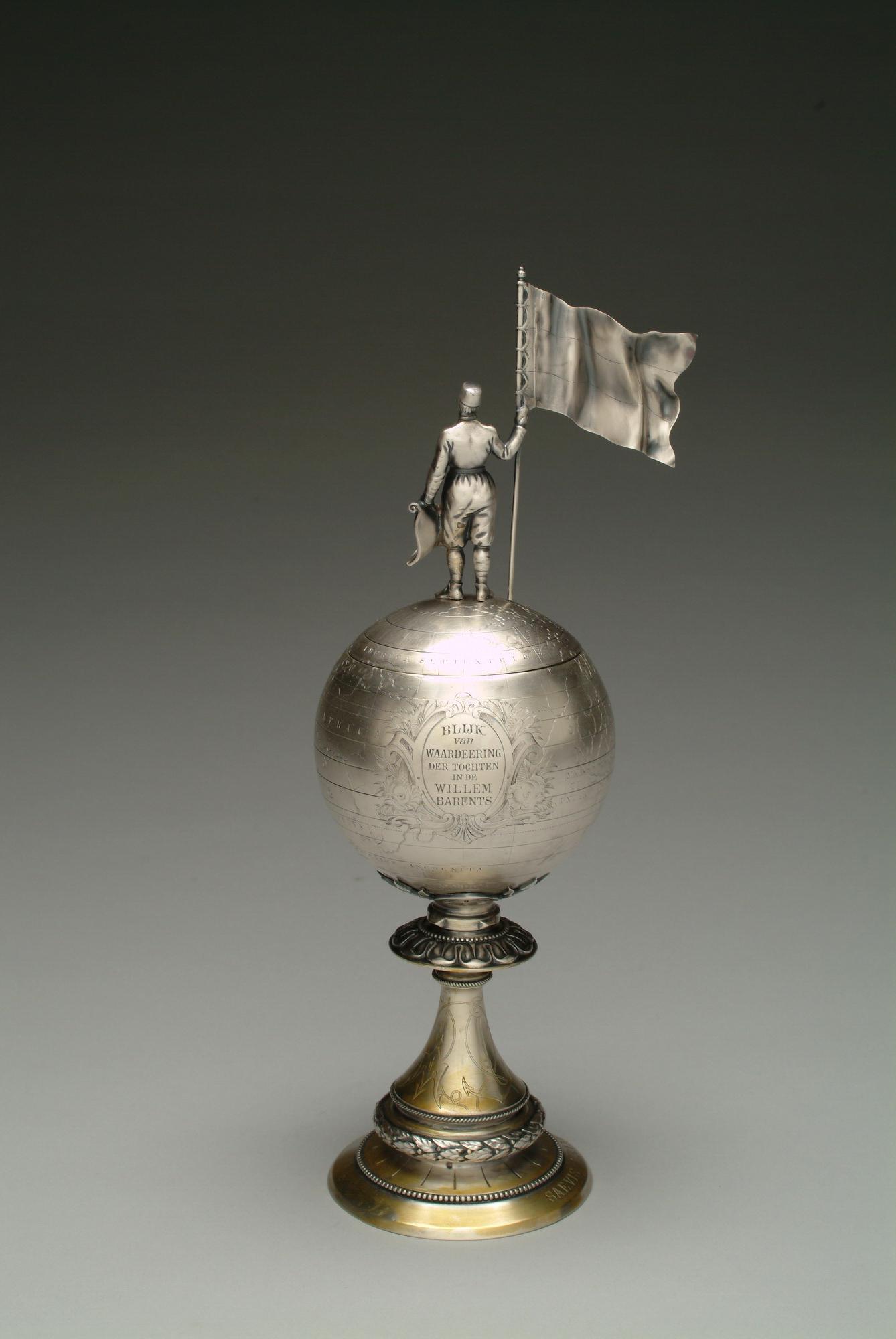 Willem Barents beker, uitgereikt door de Vereniging Willem Barents aan luitenant-ter-zee baron W.D.H van Asbeck, officier op de poolschoener "Willem Barents" na de laatste tocht van het schip in 1884.