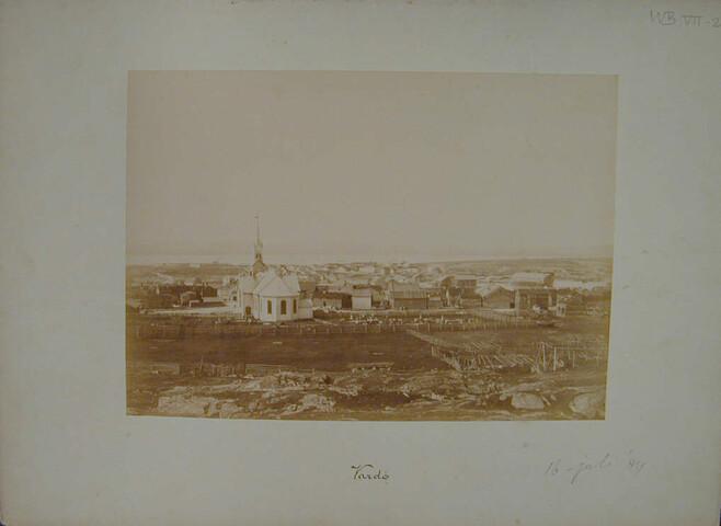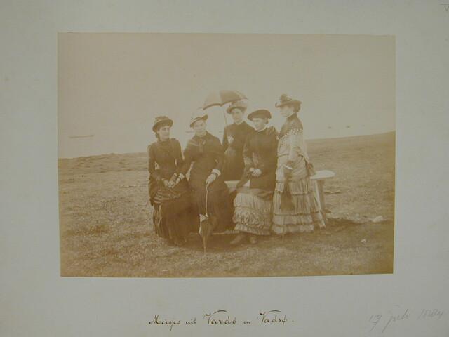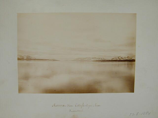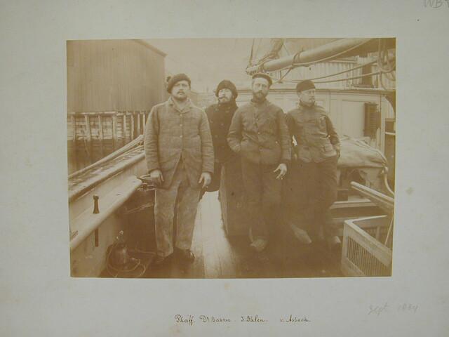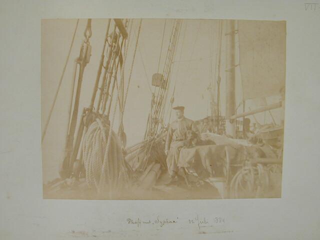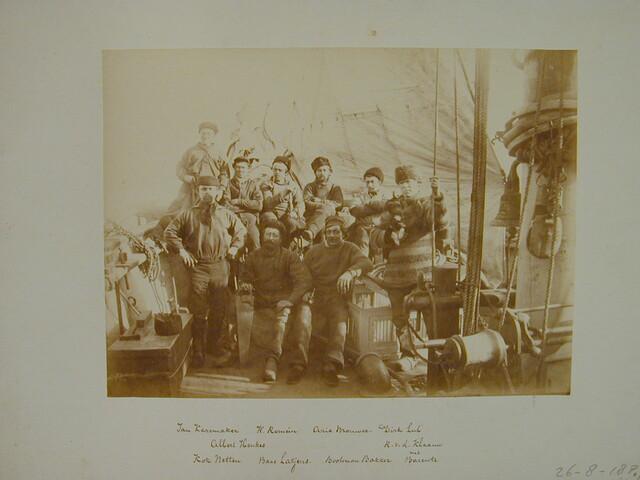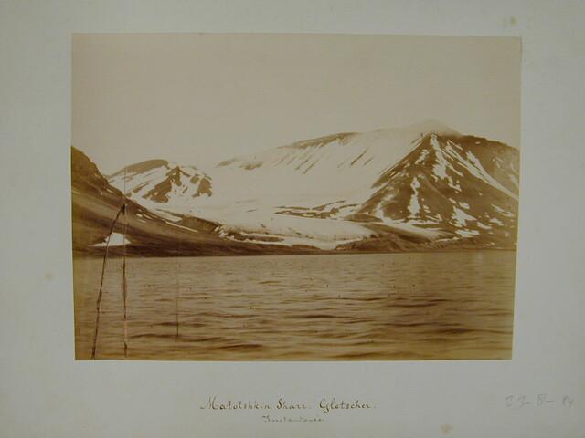Map met een verzameling losse foto's gedeeltelijk met onderschrift van de Zevende Noordoolexpeditie van de "Willem Barents" in 1884.
