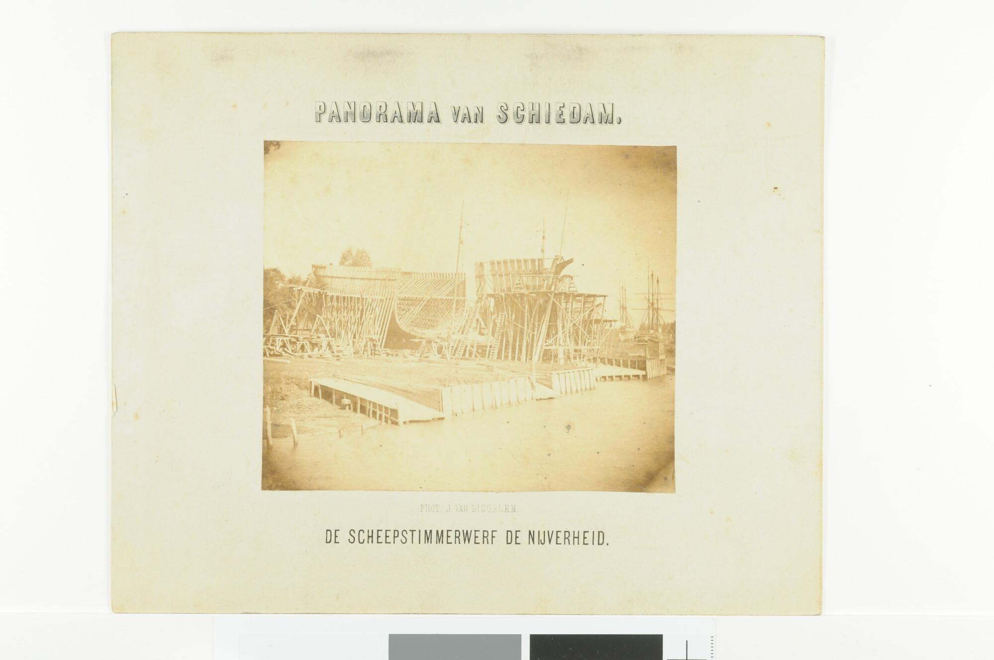 Een schip is in aanbouw bij scheepstimmerwerf 'De Nijverheid' van C. Gips & Zn. te Schiedam.