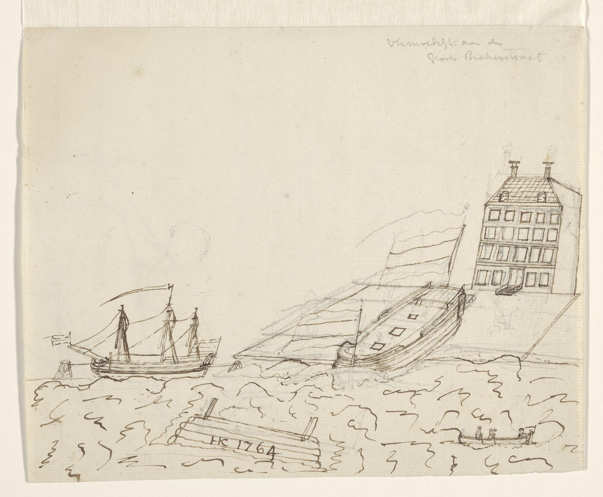 Een scheepswerf, vermoedelijk aan de Grote Bickerstraat in Amsterdam.