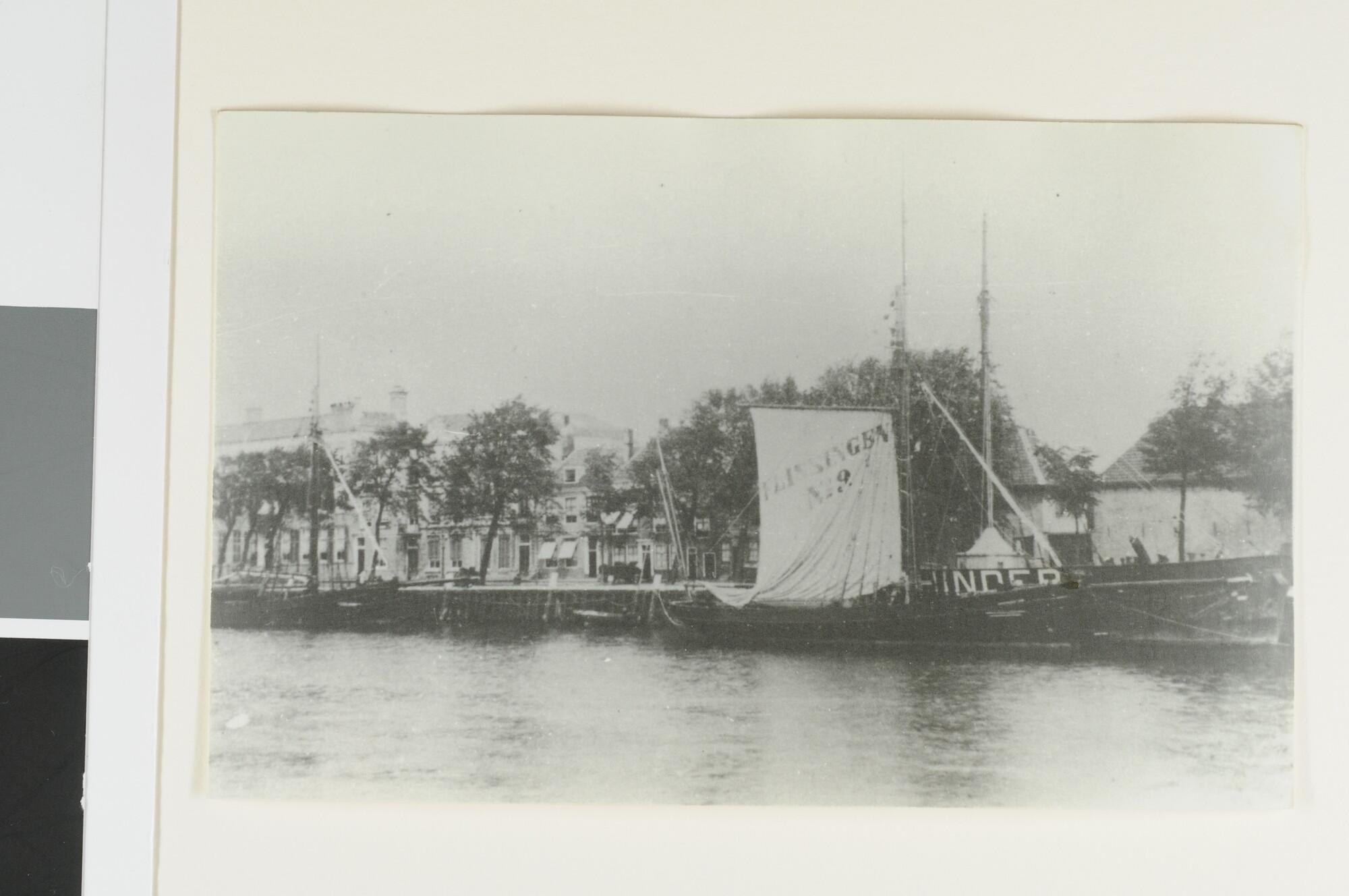 De loodsschoener "No. 9" ligt afgemeerd naast de oude "Noord Hinder" in Vlissingen. [Reproductiefoto]
