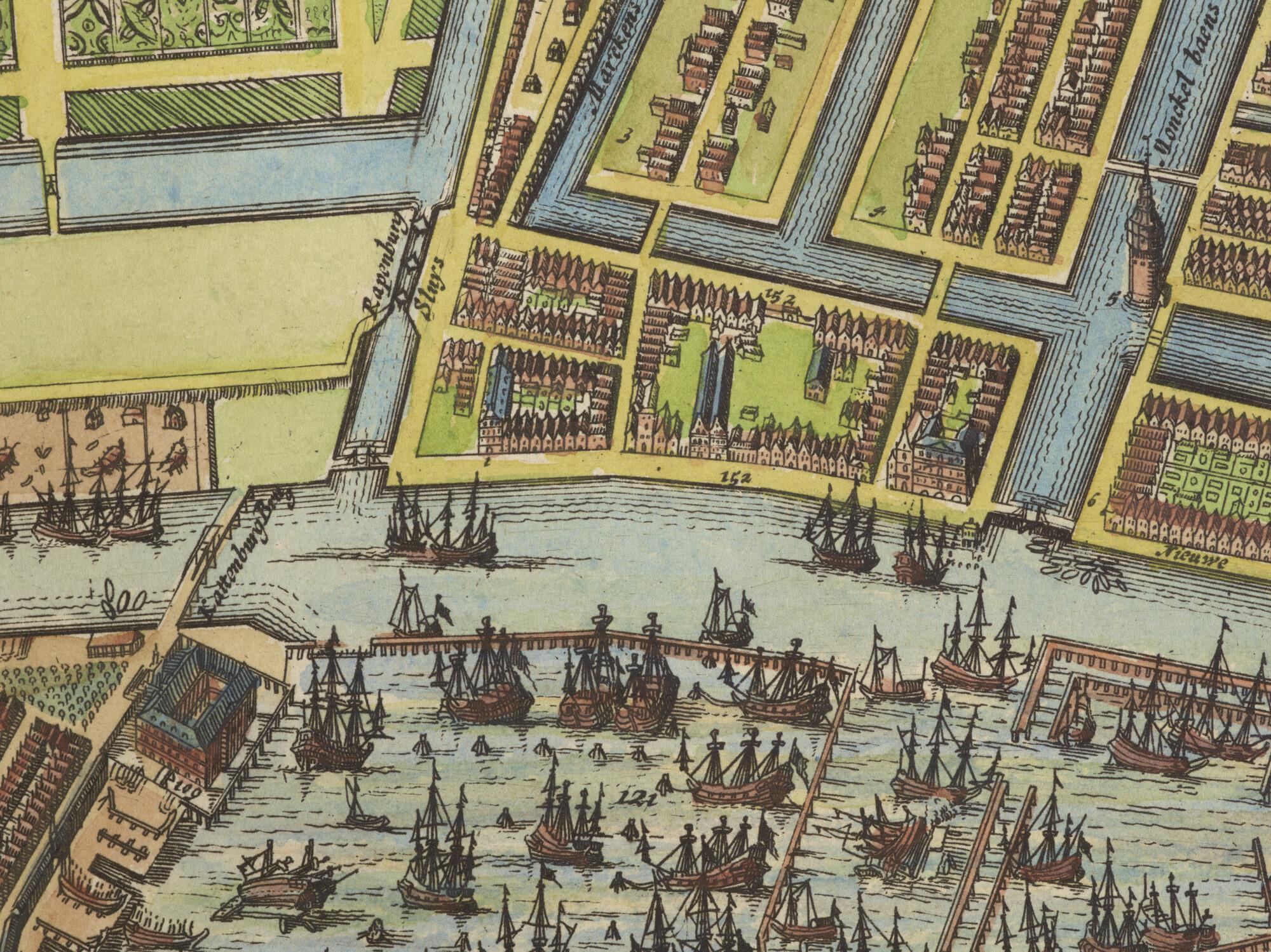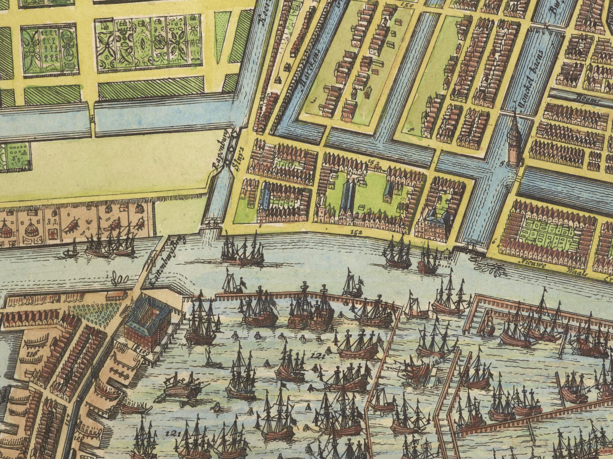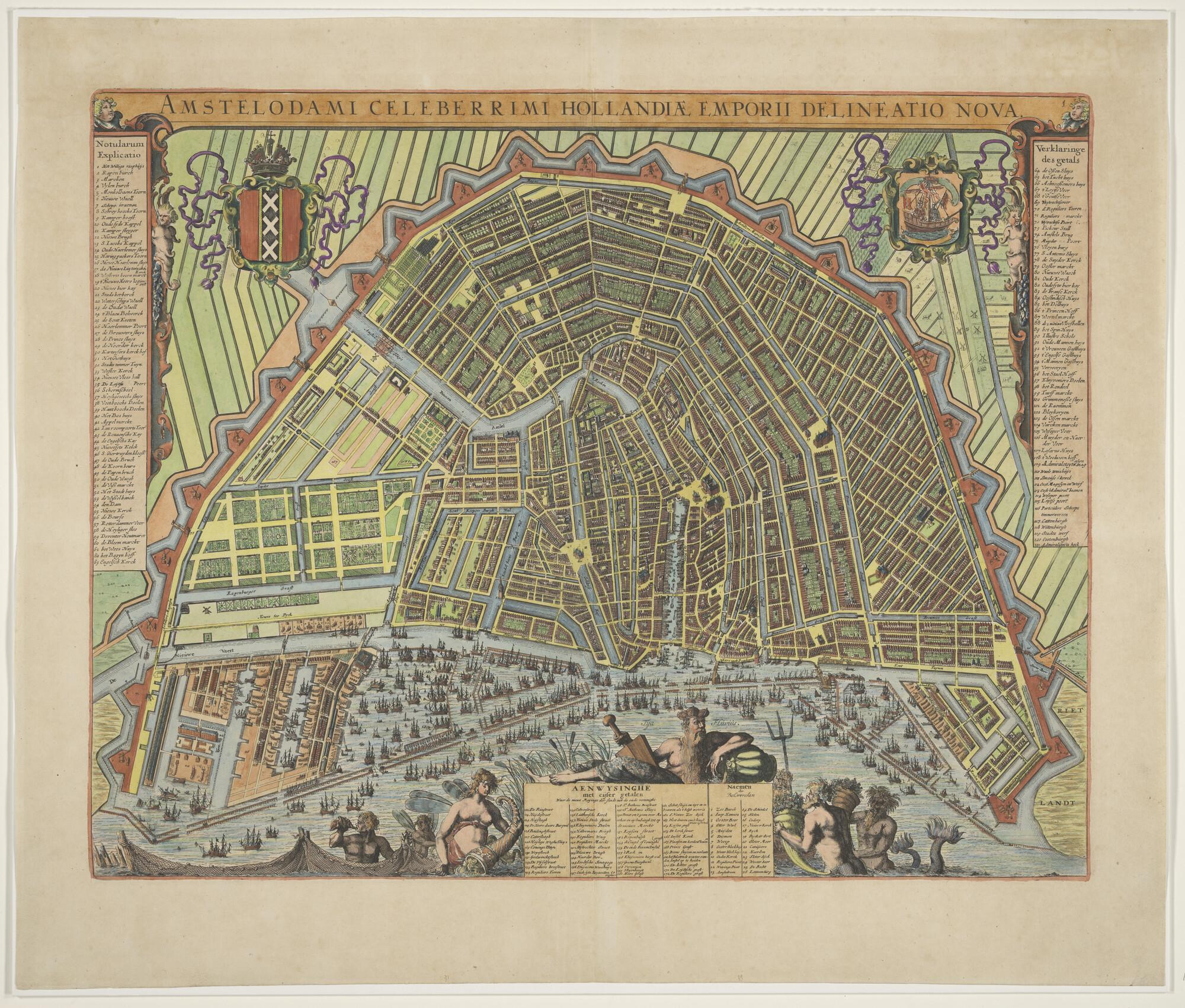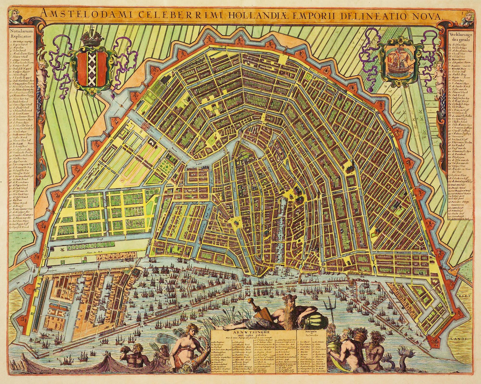 Met de hand gekleurde plattegrond van Amsterdam uit 1698 door Frederik de Wit