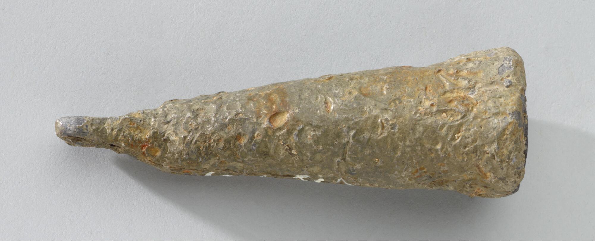 Handlood (sloepslood?) van 0,515 kg met ziel. Afkomstig uit het wrak van het VOC schip 'Princesse Maria' in 1686 bij de Engelse zuidkust vergaan. Het lood is, om onbekende reden, net boven de onderzijde doorboord.