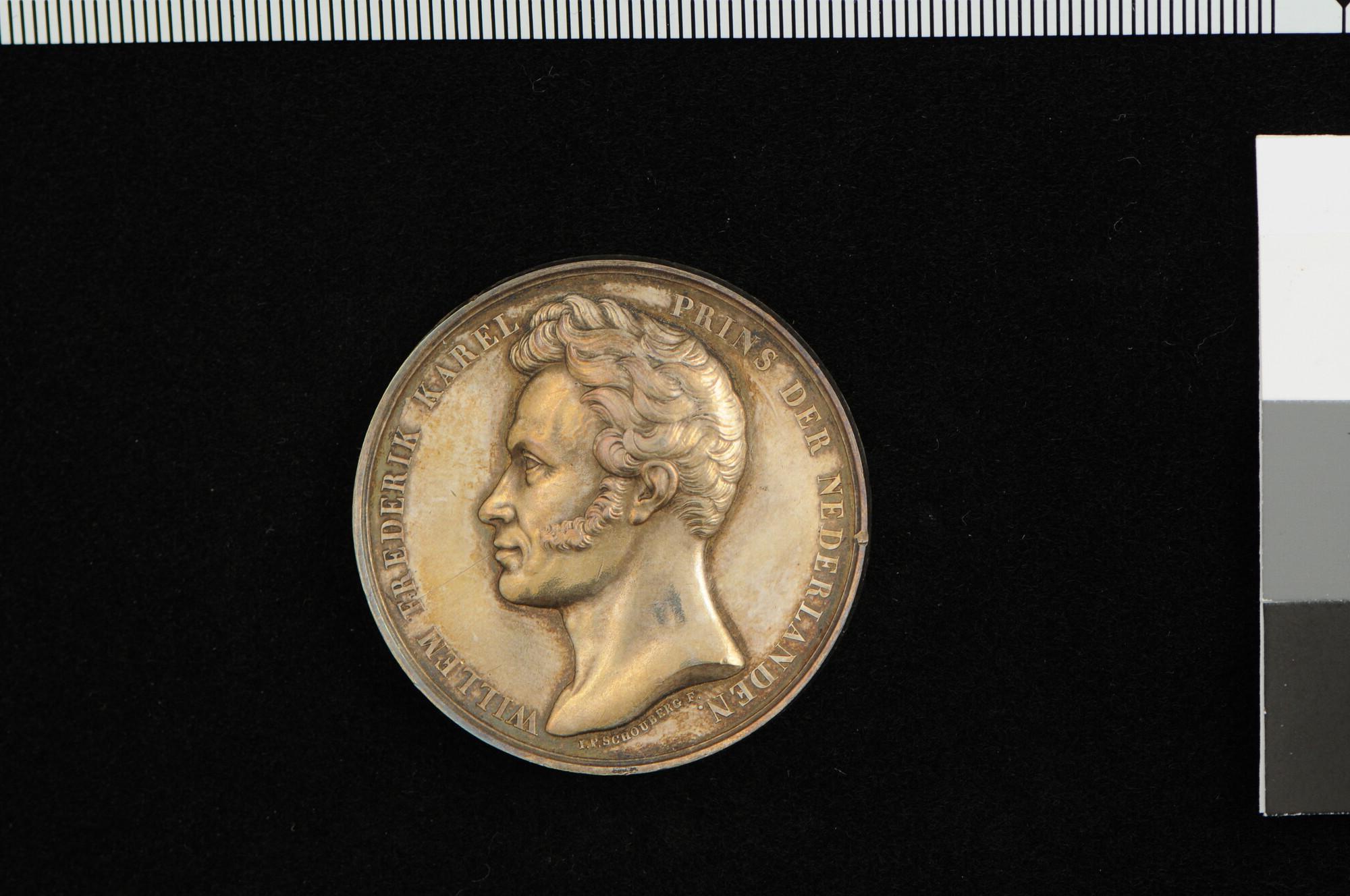 Zilveren prijspenning uitgereikt aan A.H. van der Meulen voor een nachthuis, 1852