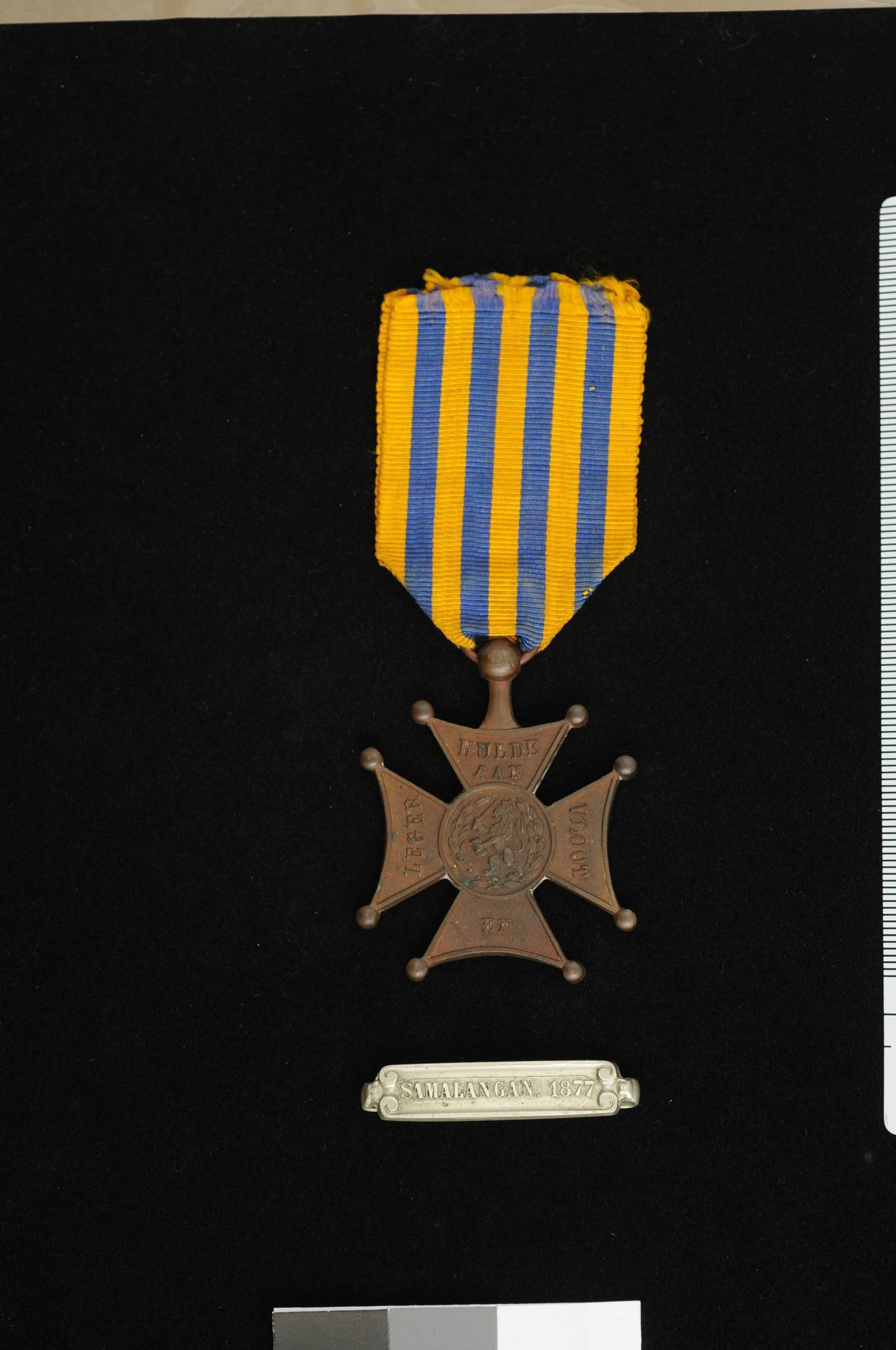 Lombokkruis aan lint met losse gesp "Samalangan 1877", behorende bij het Ereteken voor Belangrijke Krijgsbedrijven (Expeditiekruis), 1894.