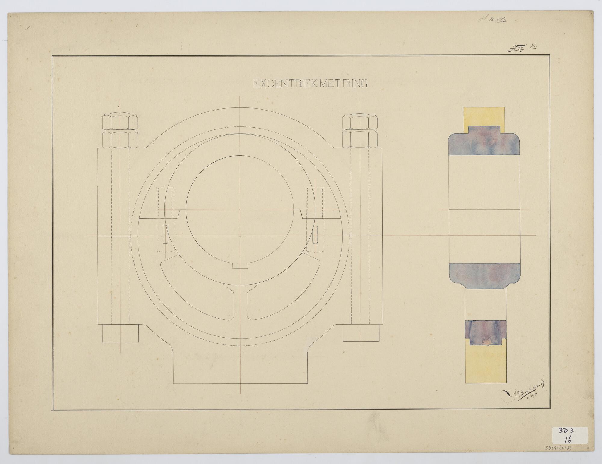 Inleiding in de eerste beginselen rechtlijnig, bouwkunstig- en werktuigbouwkunstig tekenen: excentriek met ring