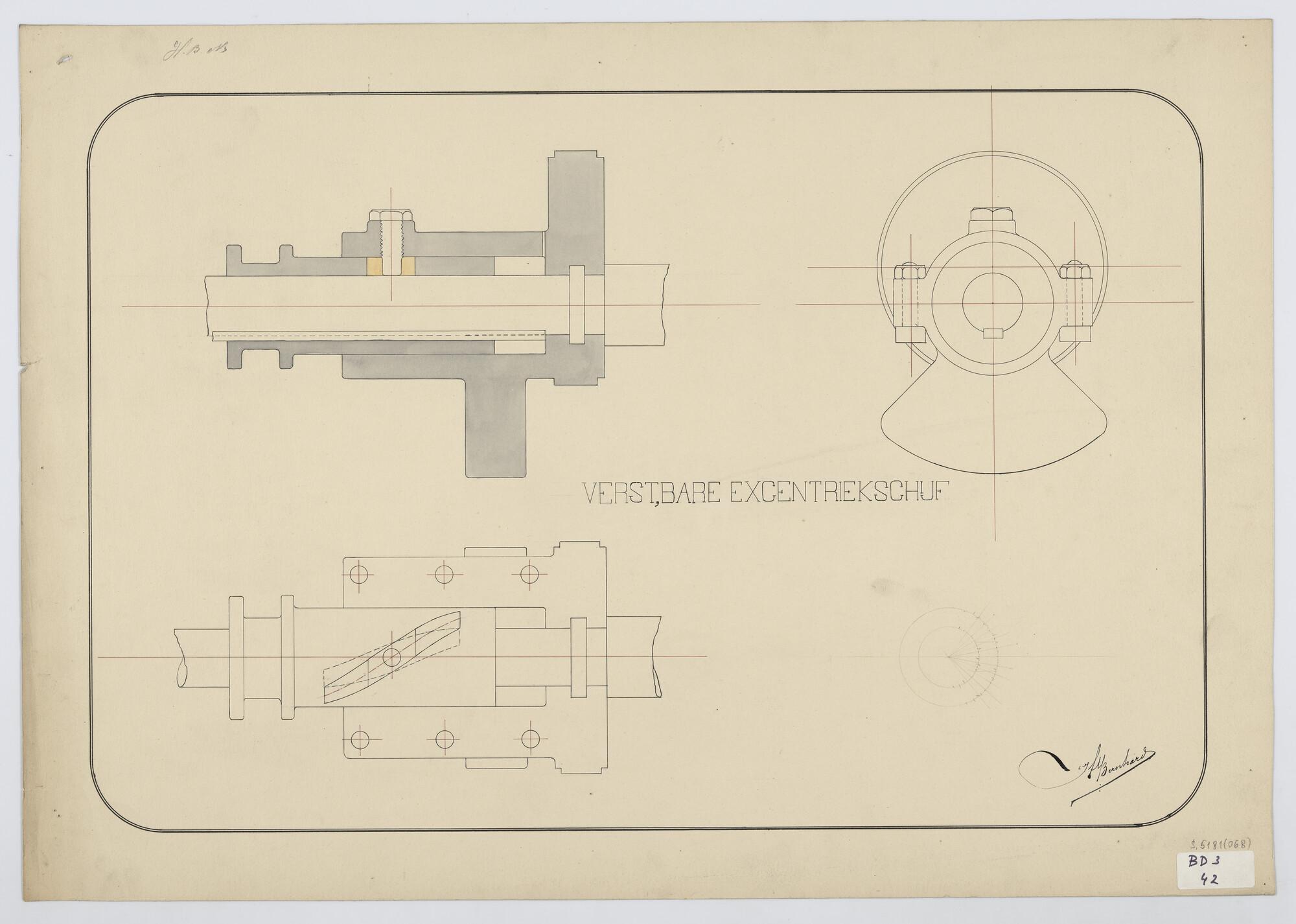 Inleiding in de eerste beginselen rechtlijnig, bouwkunstig- en werktuigbouwkunstig tekenen: verstelbare excentriekschijf.