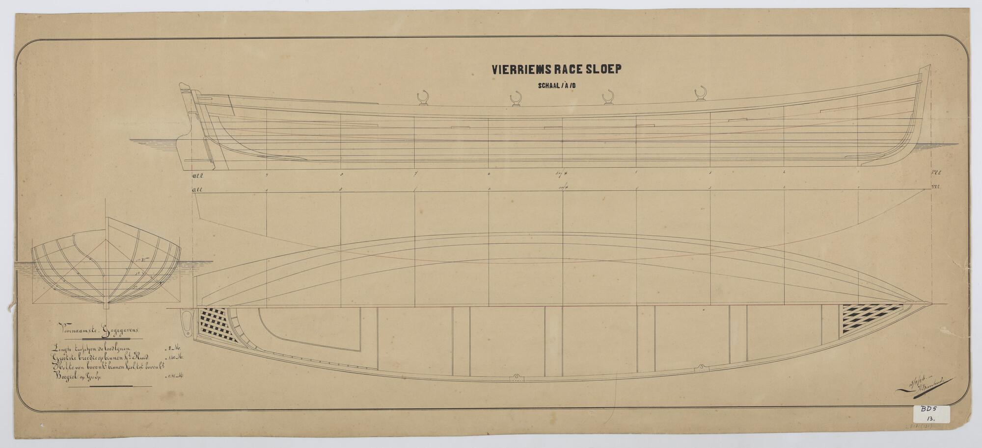 Lijnenplan van een 8 riems wedstrijdroeiboot.