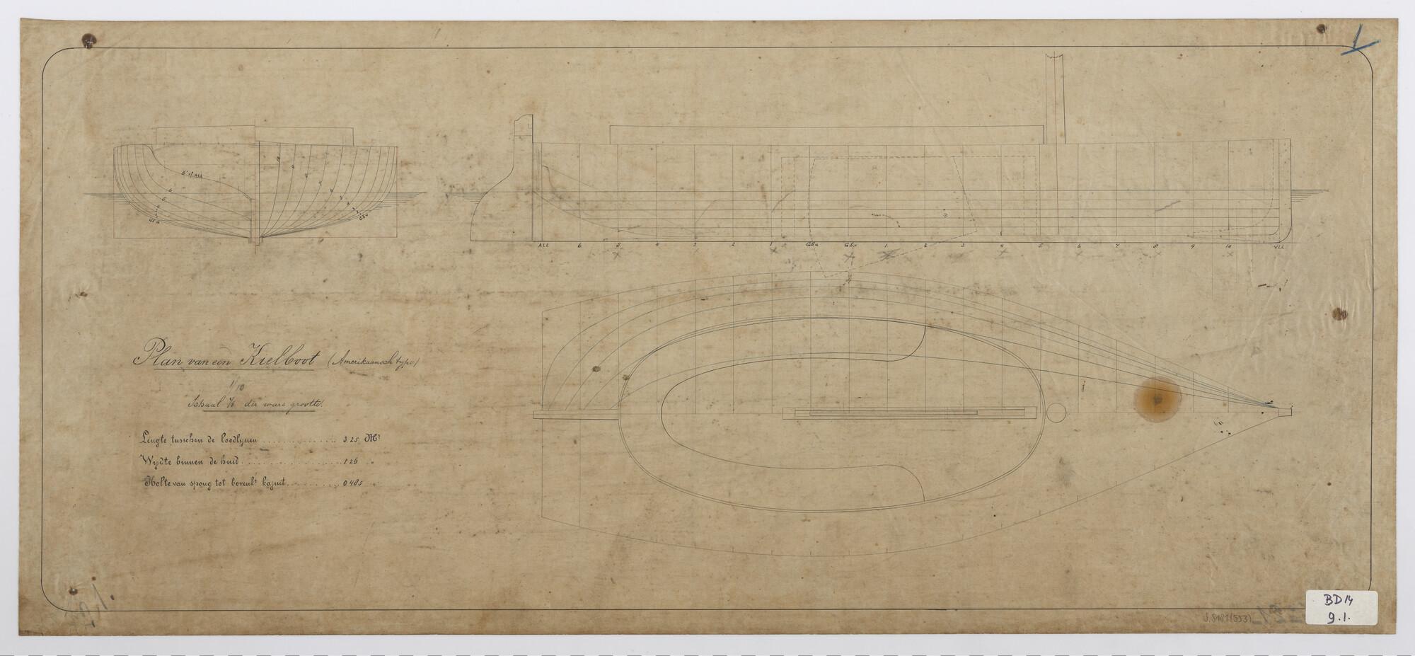 Lijnenplan van een Amerikaans type kieljacht
