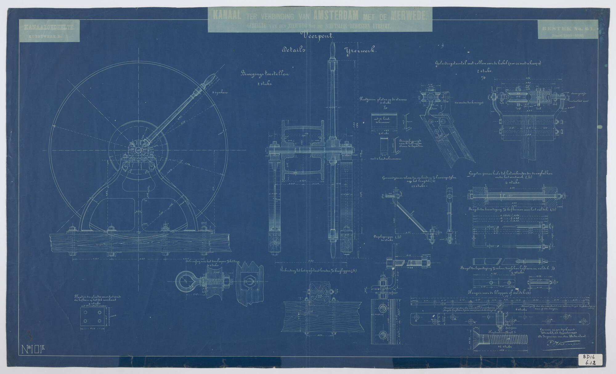 Details van overzetwerk van veerpont voor het kanaal dat Amsterdam verbindt met de Merwede in het gedeelte van de Zeijlweg tot de schutsluis bewesten Utrecht.