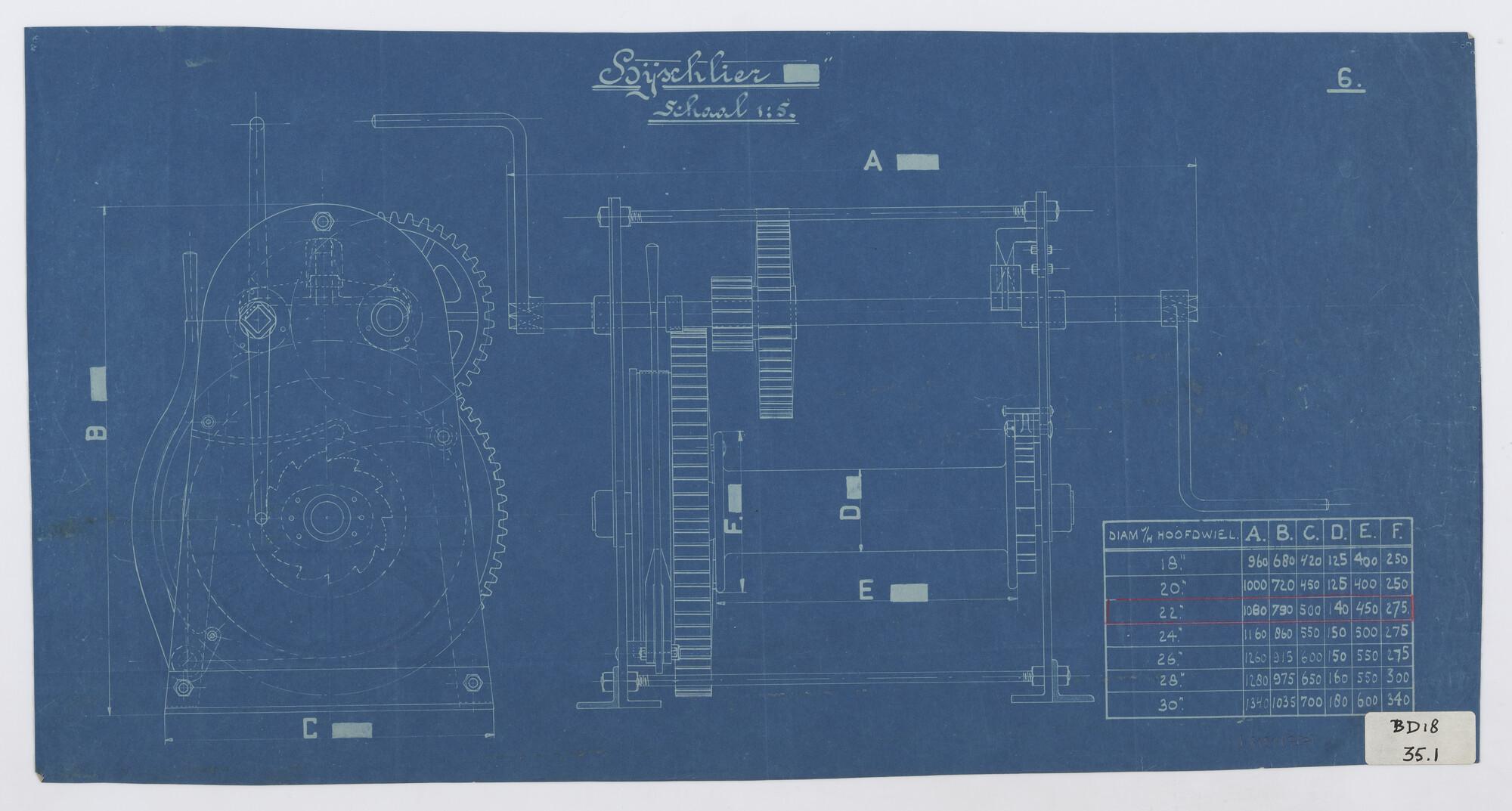 Handhijslier met hoofdafmetingen voor de 7 verschillende grootte typen