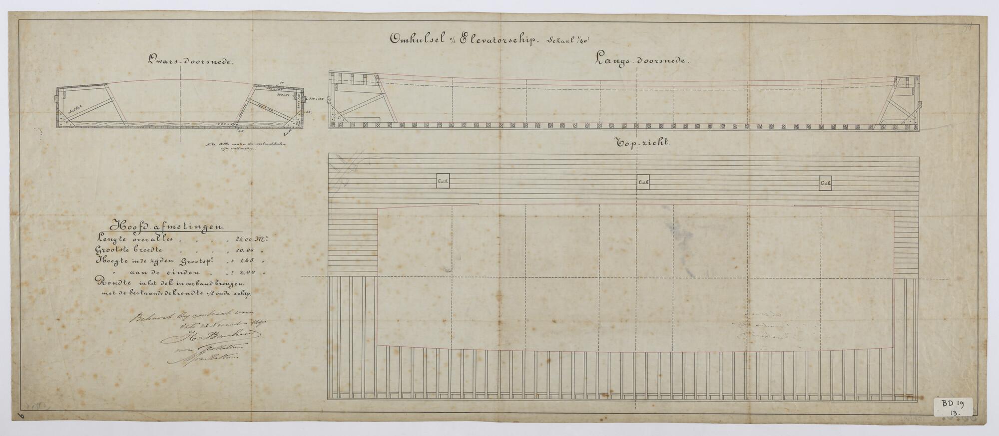 Algemeen plan van een houten omhulsel van een elevator.