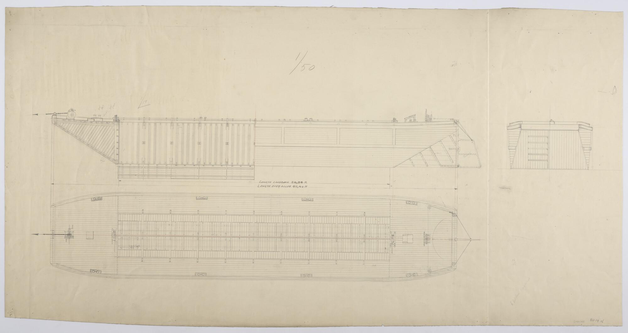 Algemeen plan van een houten onderlosser van 42.40 meter. lengte.