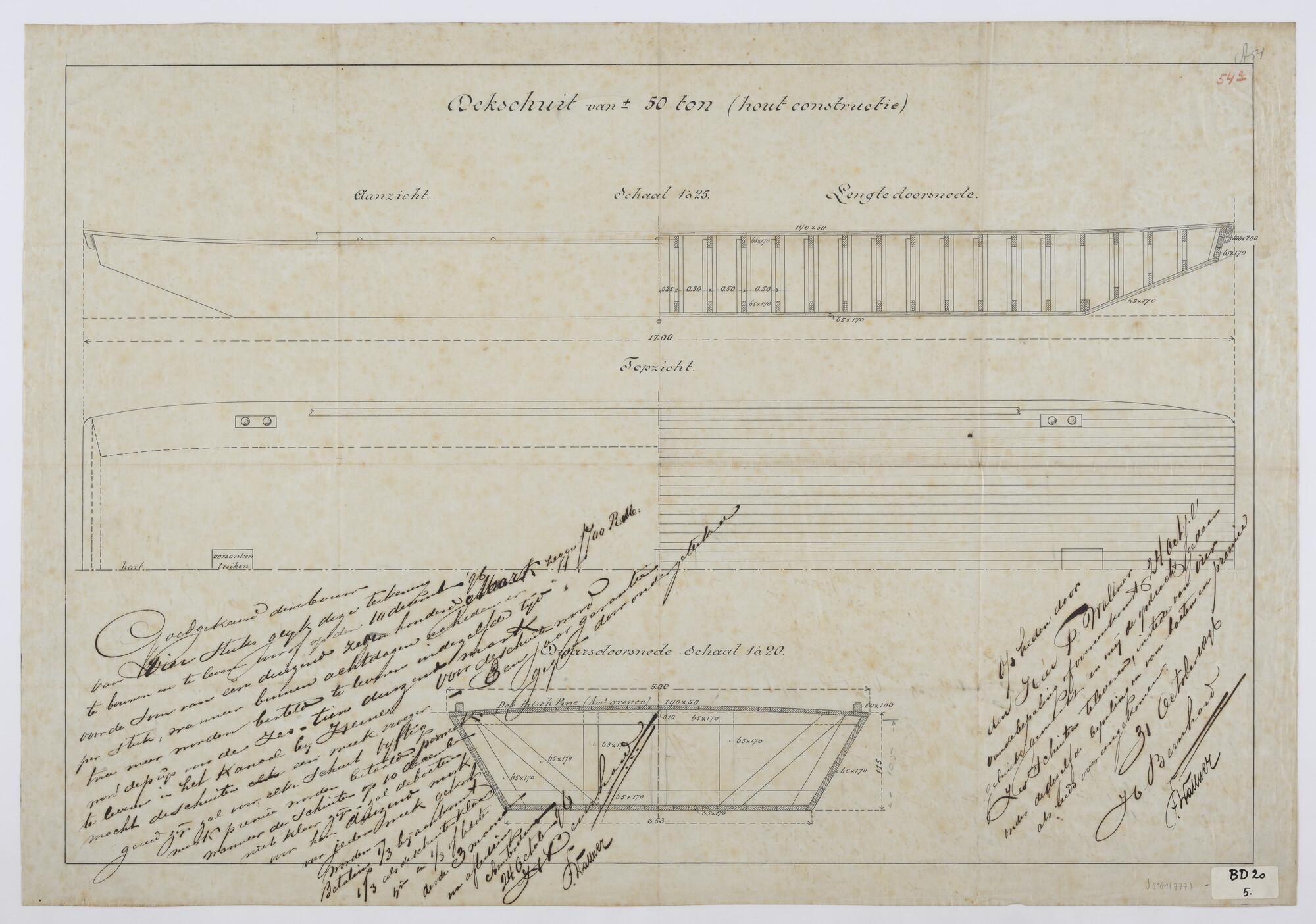 Algemeen plan van een houten dekschuit.
